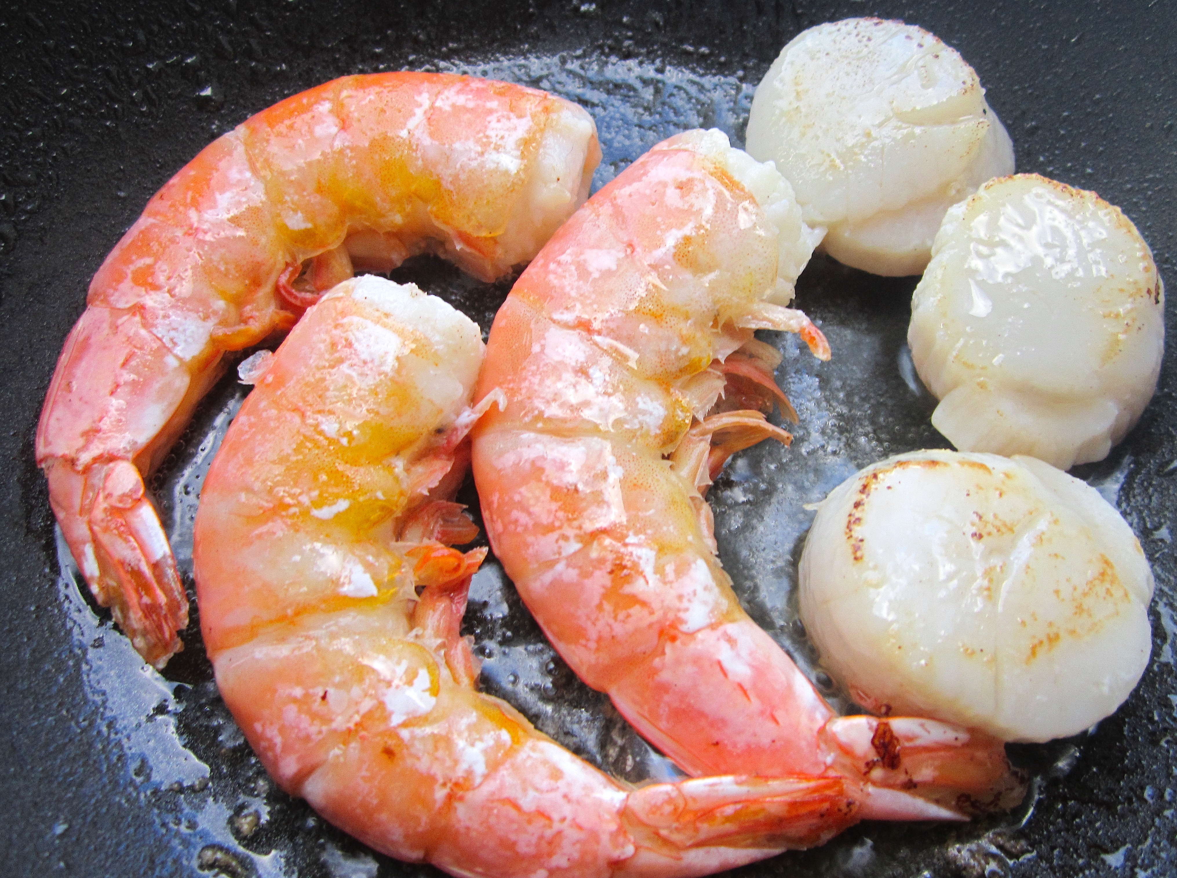shrimp and scallops ← Previous Next → season scallops and shrimp with kosher salt and cayenne pepper, saute in garlic oil, remove from heat