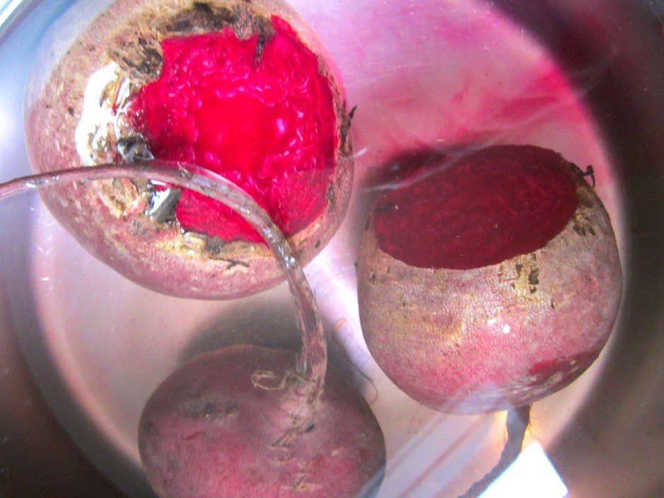 simmer beets in salted water until soft, drain, peel (reserve beet stock)