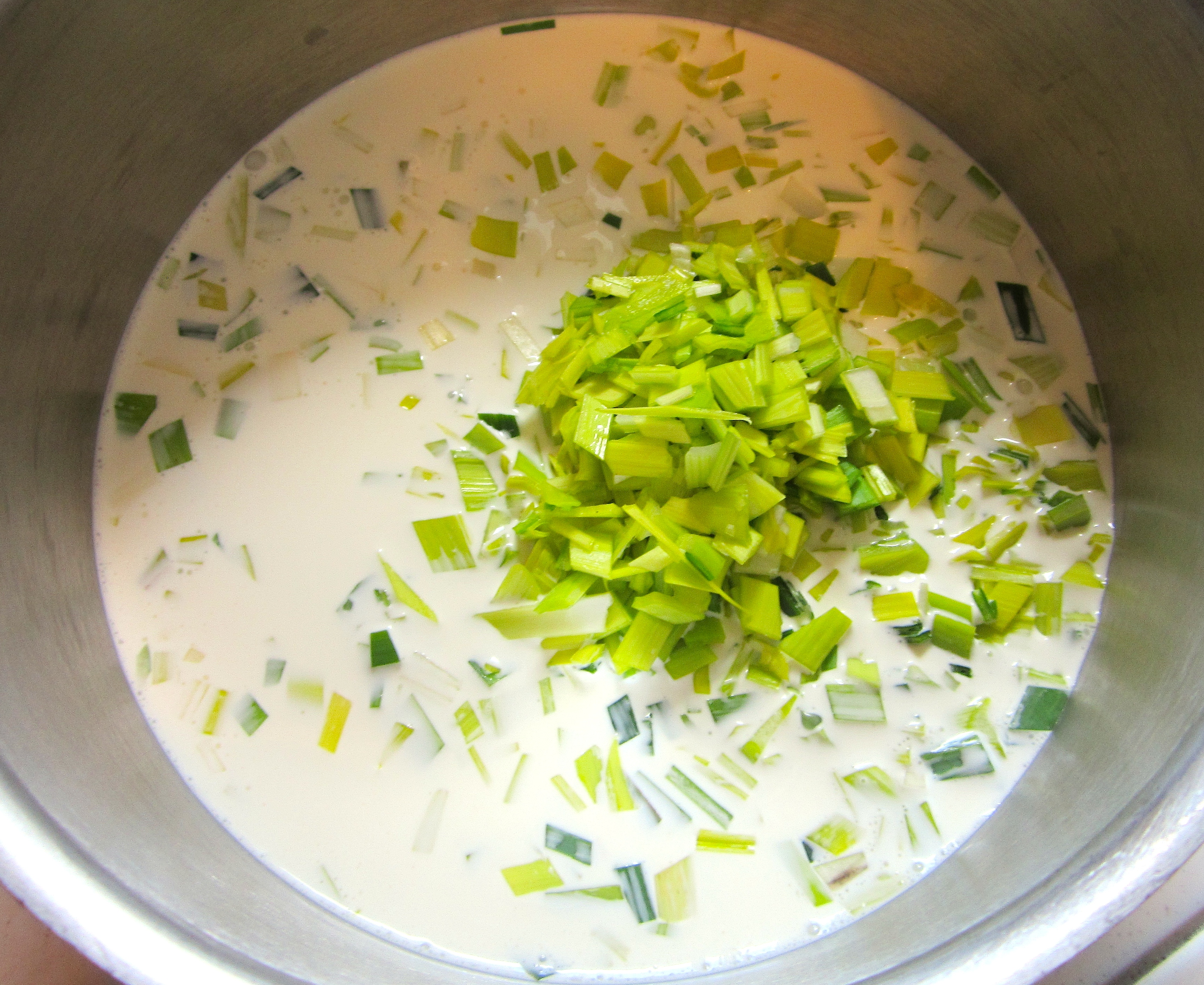 simmer leeks in cream until soft