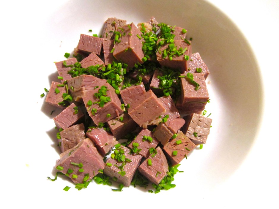 Matzoball & Corned Beef Soup ← Previous Next → place corned beef and finely sliced chives in serving dish