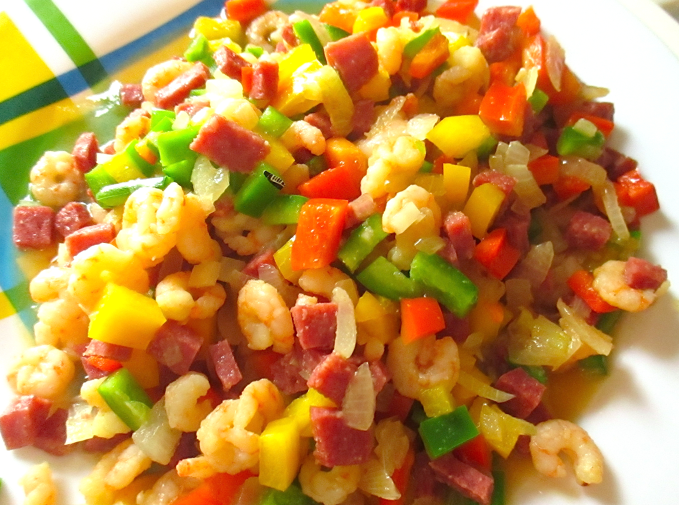 Shrimp And Lap Chea Fried Rice ← Previous Next → add shrimp, lap cheong and peppers, season with kosher salt and cayenne pepper, remove from oil, set aside