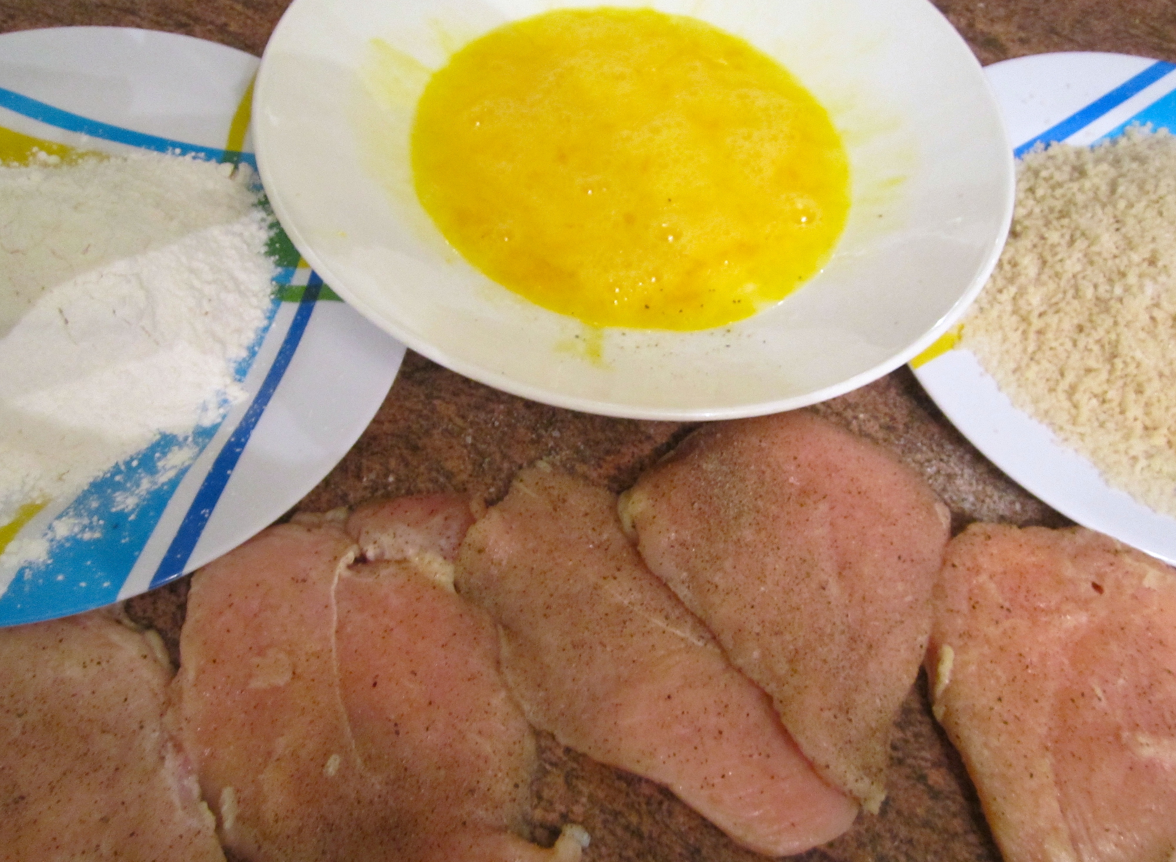 Panko Breaded Cicken Breast & Romain In Sun Dried Tomato Dressing Next → season chicken breasts with kosher salt and black pepper, bread in flour/egg/panko