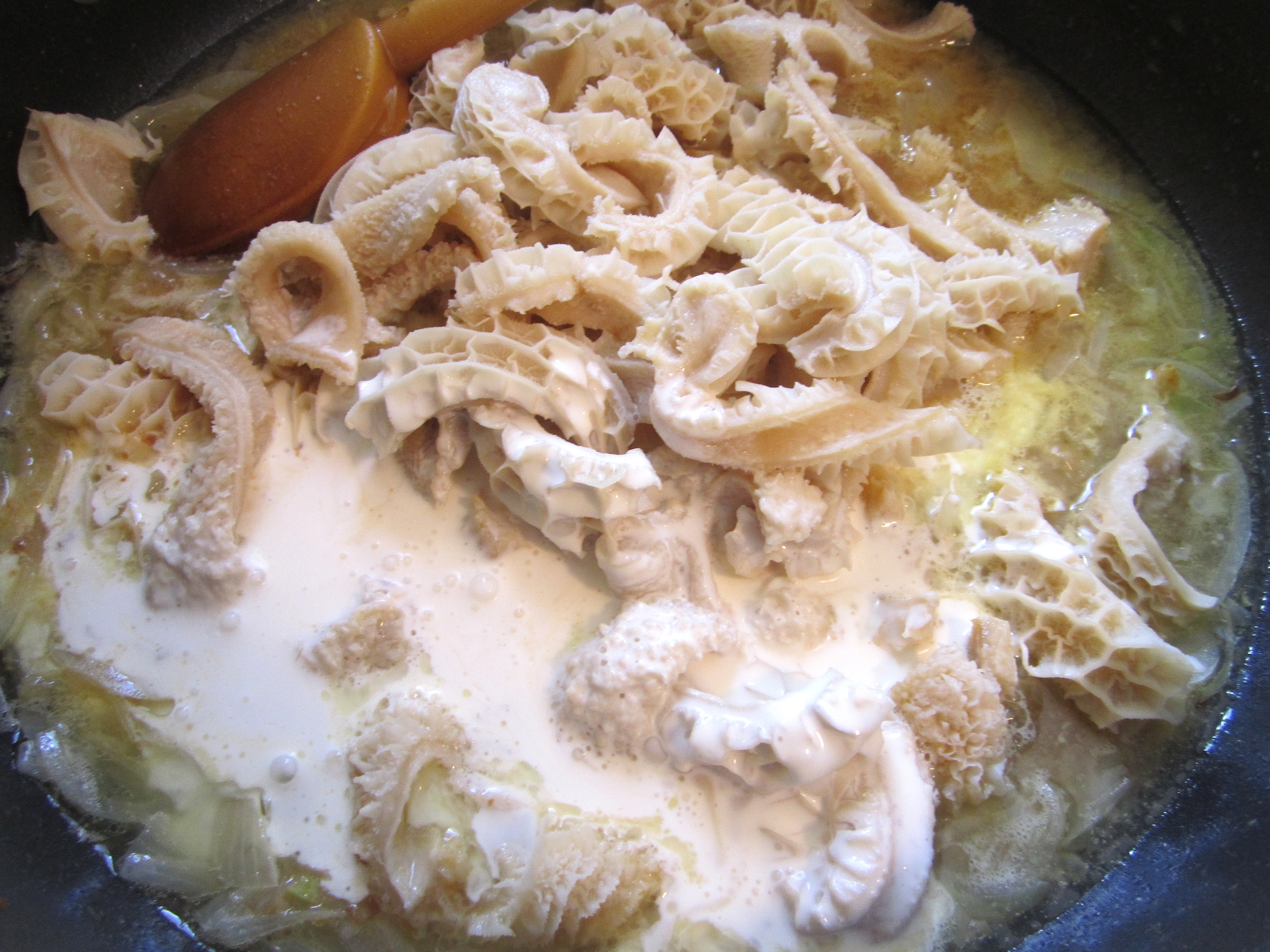 mondongo. tripe. kutteln ← Previous Next → add heavy cream, kosher salt, cayenne pepper and tripe, simmer for 10 minutes