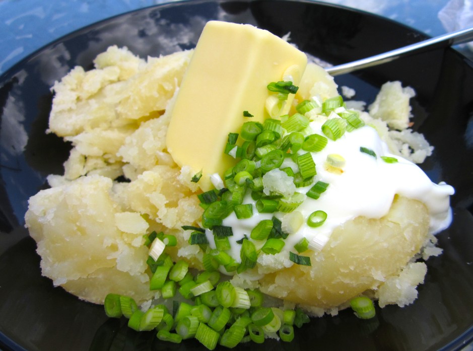 Eggs And Potato (Caviar And Baked Potato) ← Previous Next → mix with butter, finely sliced scallions, a bit of greek yogurt and a tiny dash of sriracha
