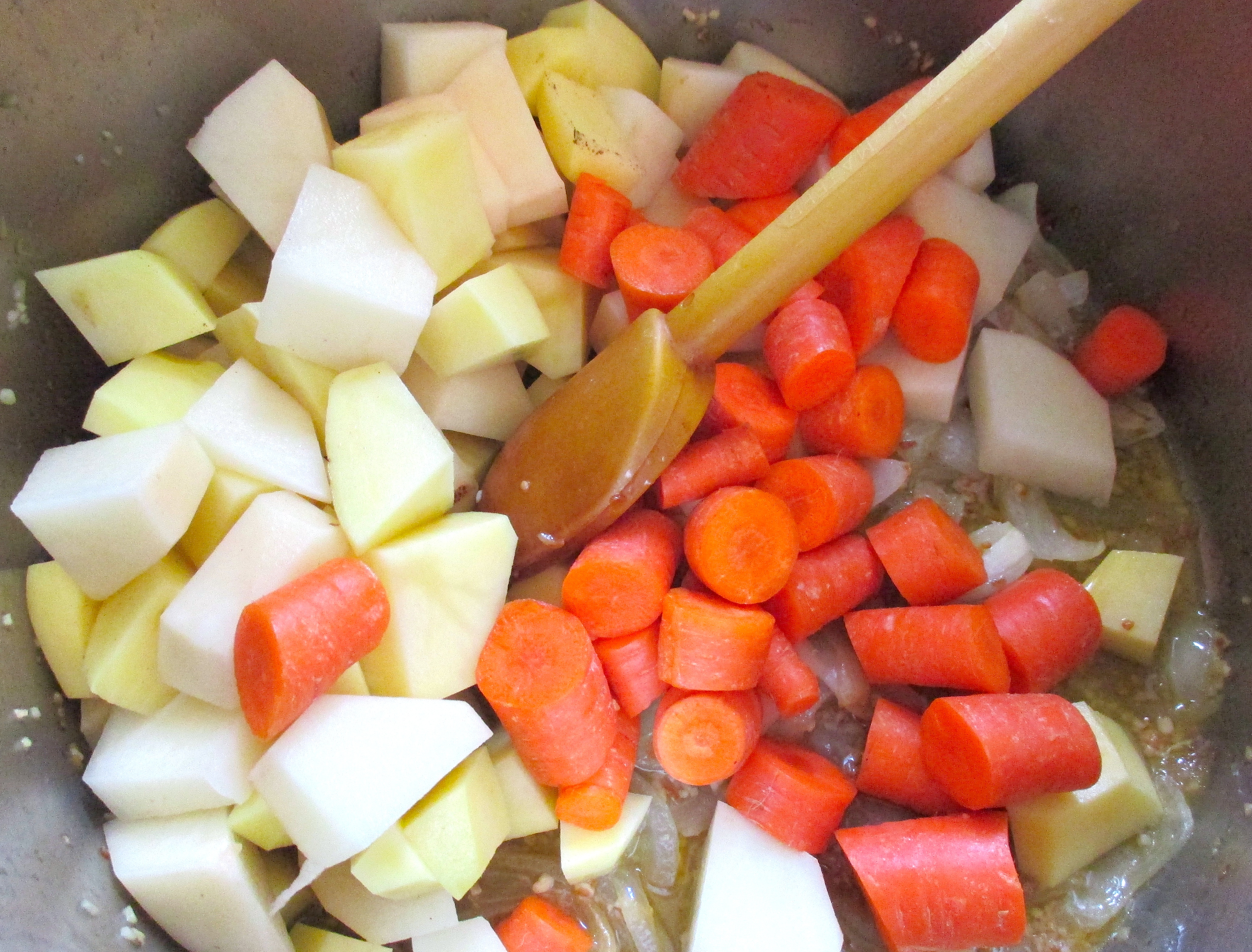 Creamy Potato And Carrot Soup With Salami And Shrimp ← Previous Next → add diced potatoes and diced carrots