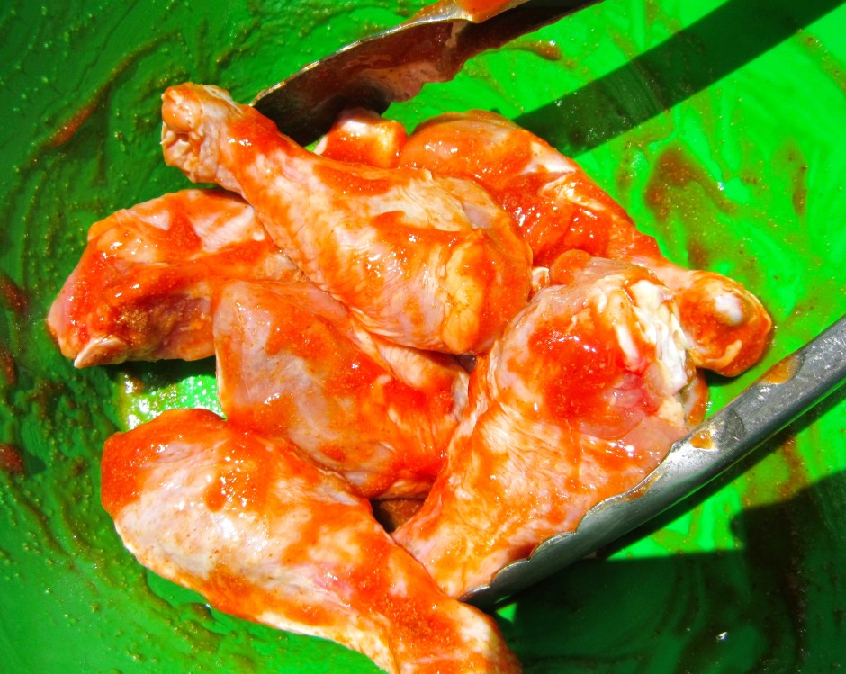 marinade chicken drumsticks with pureed chipotle and kosher salt