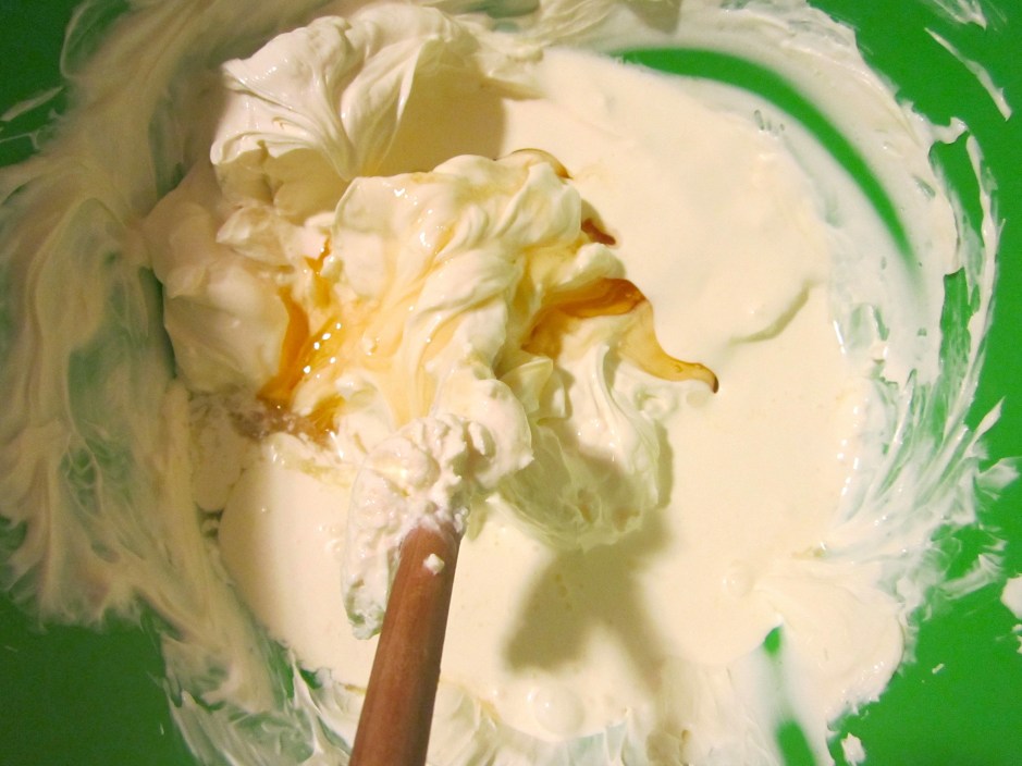 Crustless No Bake Cheese Cake Next → Mix 3 cup cream cheese, 1/2 cup sugar-free whipped cream, 1/2 cup mascarpone cheese, a dash of organic vanilla extract and 1/4 cup organic honey