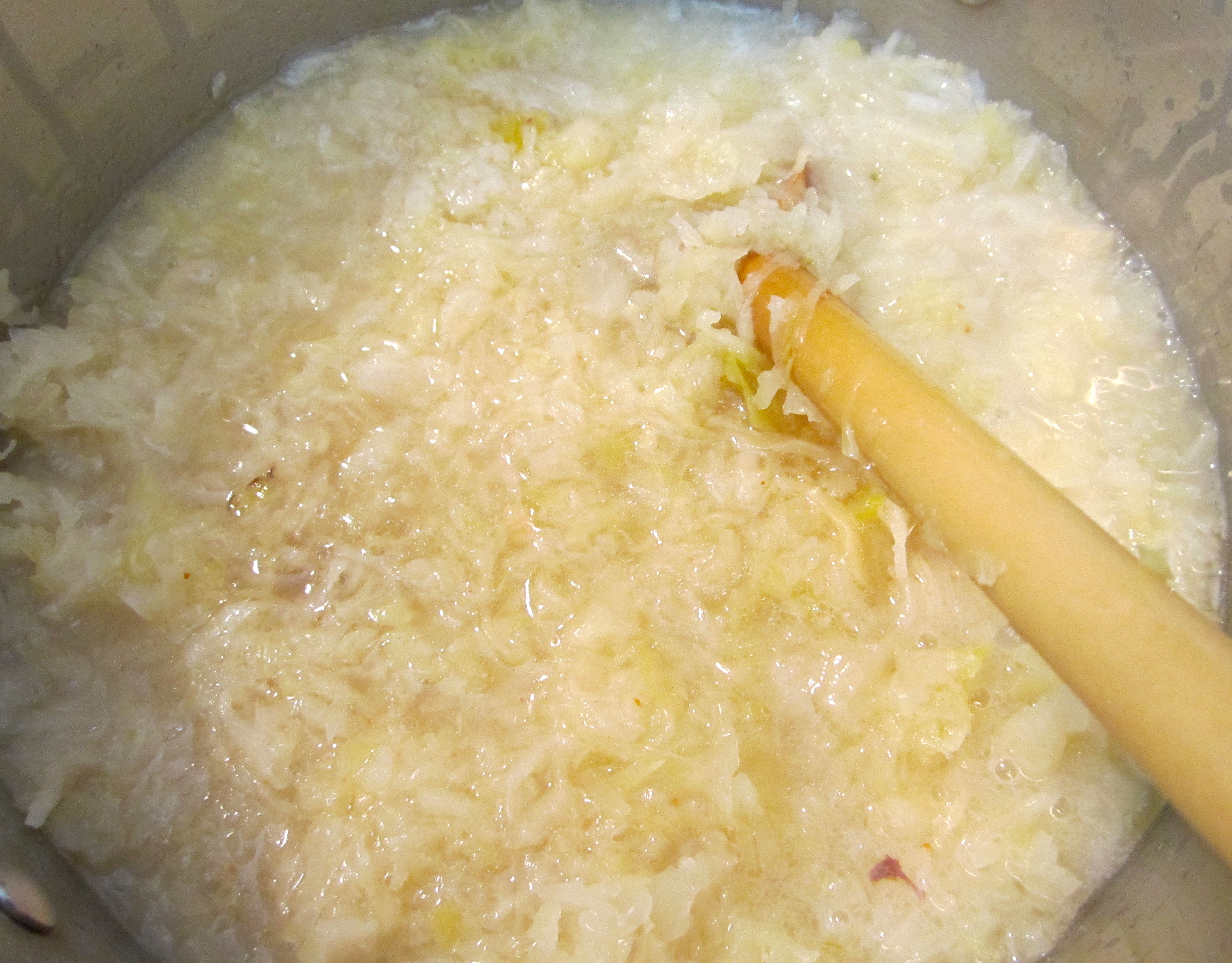 simmer sauerkraut until most of the liquid has evaporated, about 30 minutes