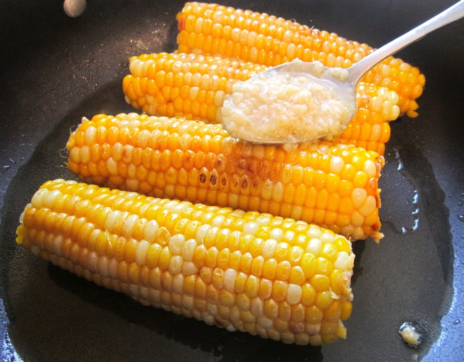 Fresh Corn And Arugula Salad With Chorizo Next → Saute fresh corn slowly in garlic oil with garlic paste