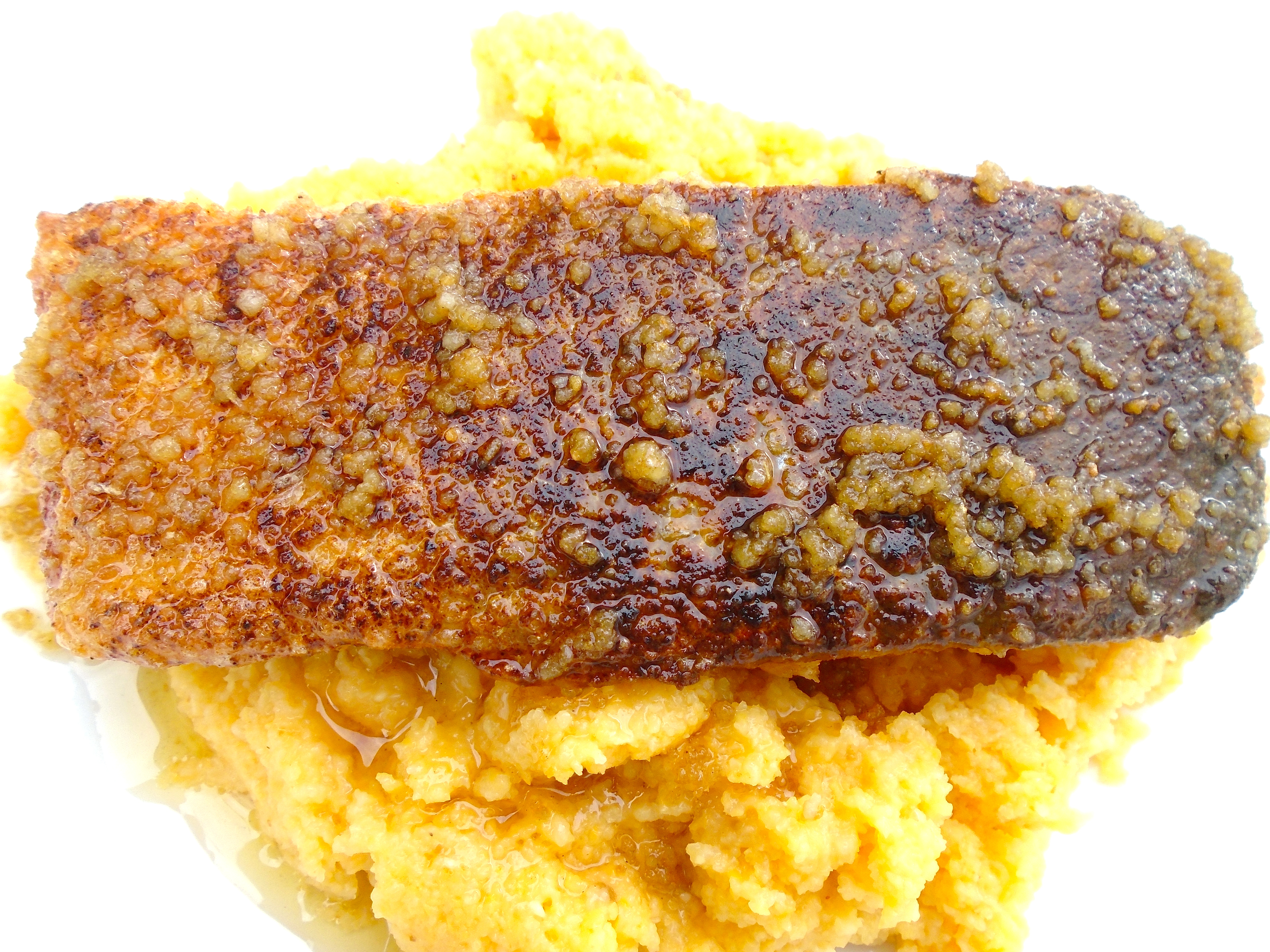 Salmon & Grits In Garlic/Lime Butter ← Previous Next → ladle the garlic/lime butter over both the salmon and the grits, top with finely sliced iceberg and red onion, dressed with Greek yogurt, cayenne, kosher salt and lime juice