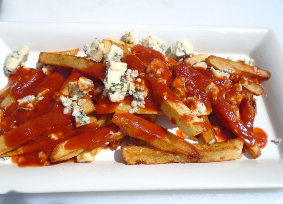 ladle tomato sauce over cheese and fries, top with more cheese