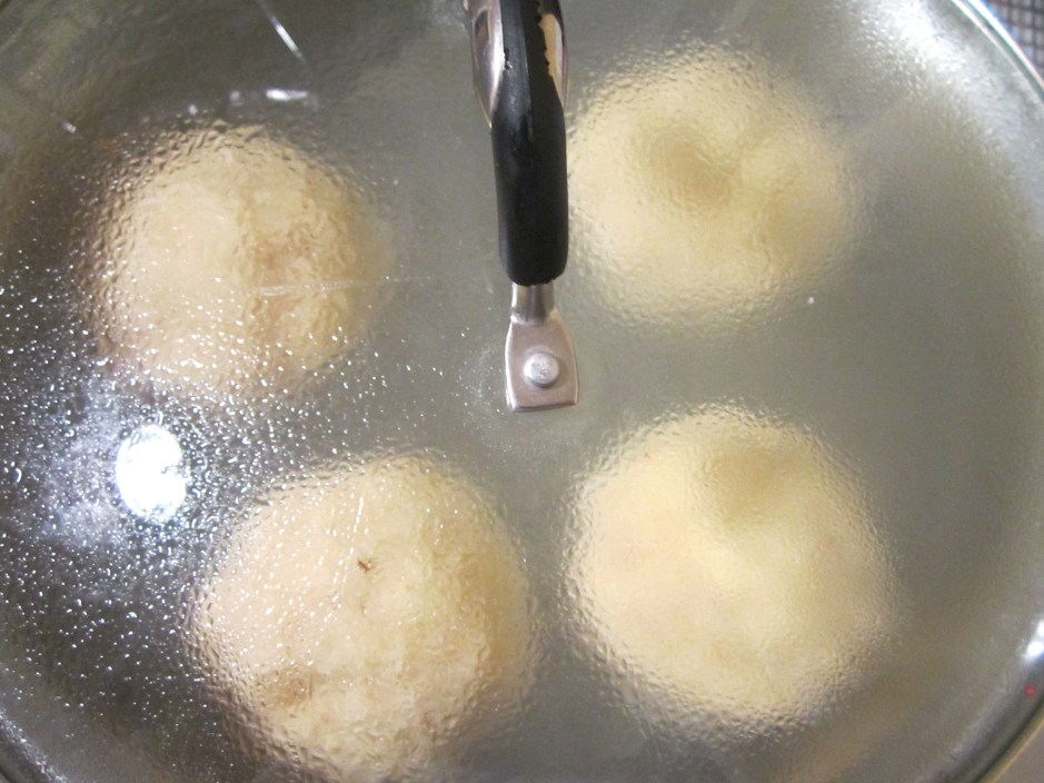 Jerk Chicken-Stuffed Matzo Ball Soup ← Previous Next → simmer in lightly salted water until cooked through and trippled in size, about 40 minutes