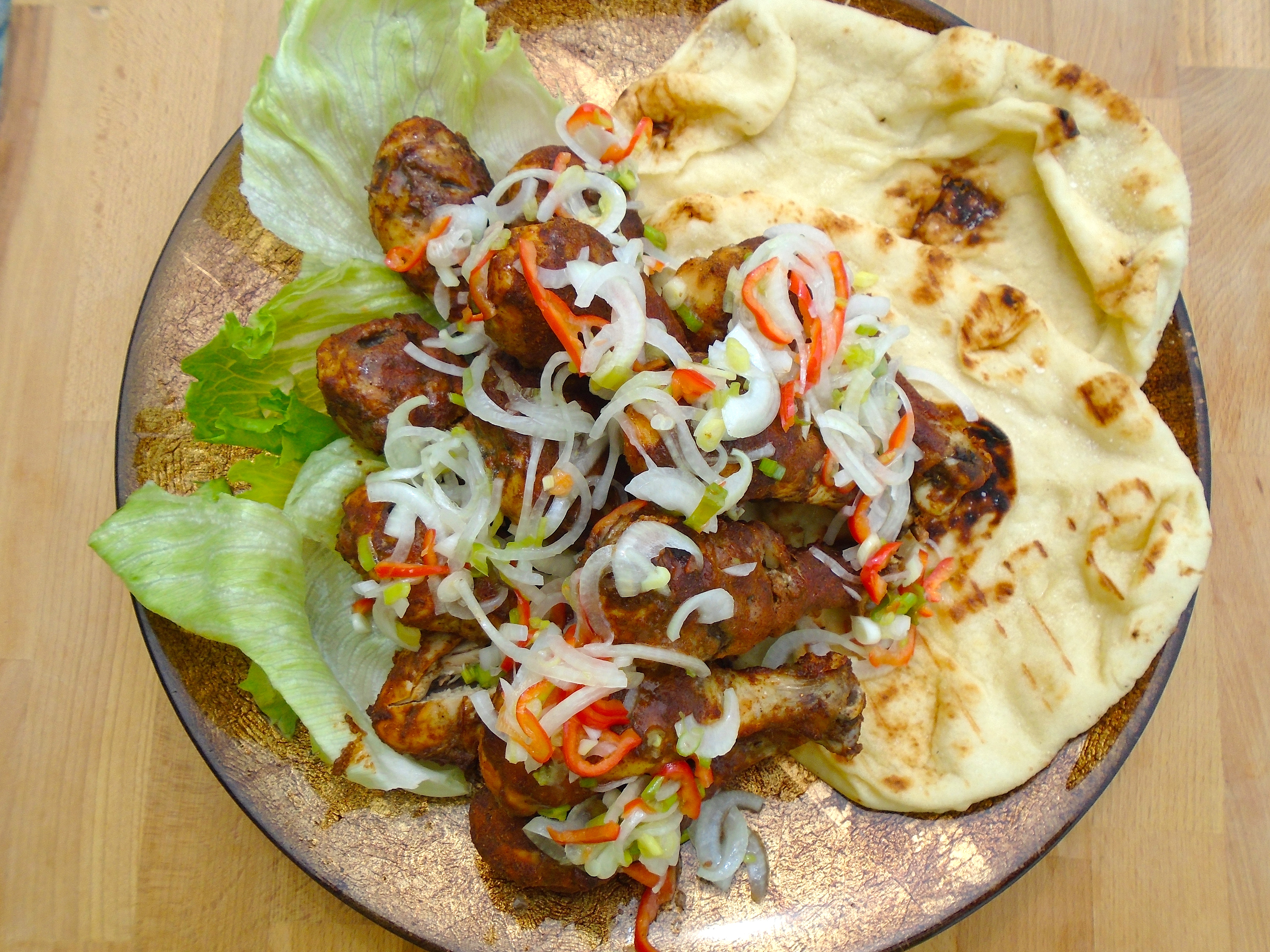 Tandori-Style Chicken Tighs with Pickled Onions ← Previous Next → top chicken with the marinated onions