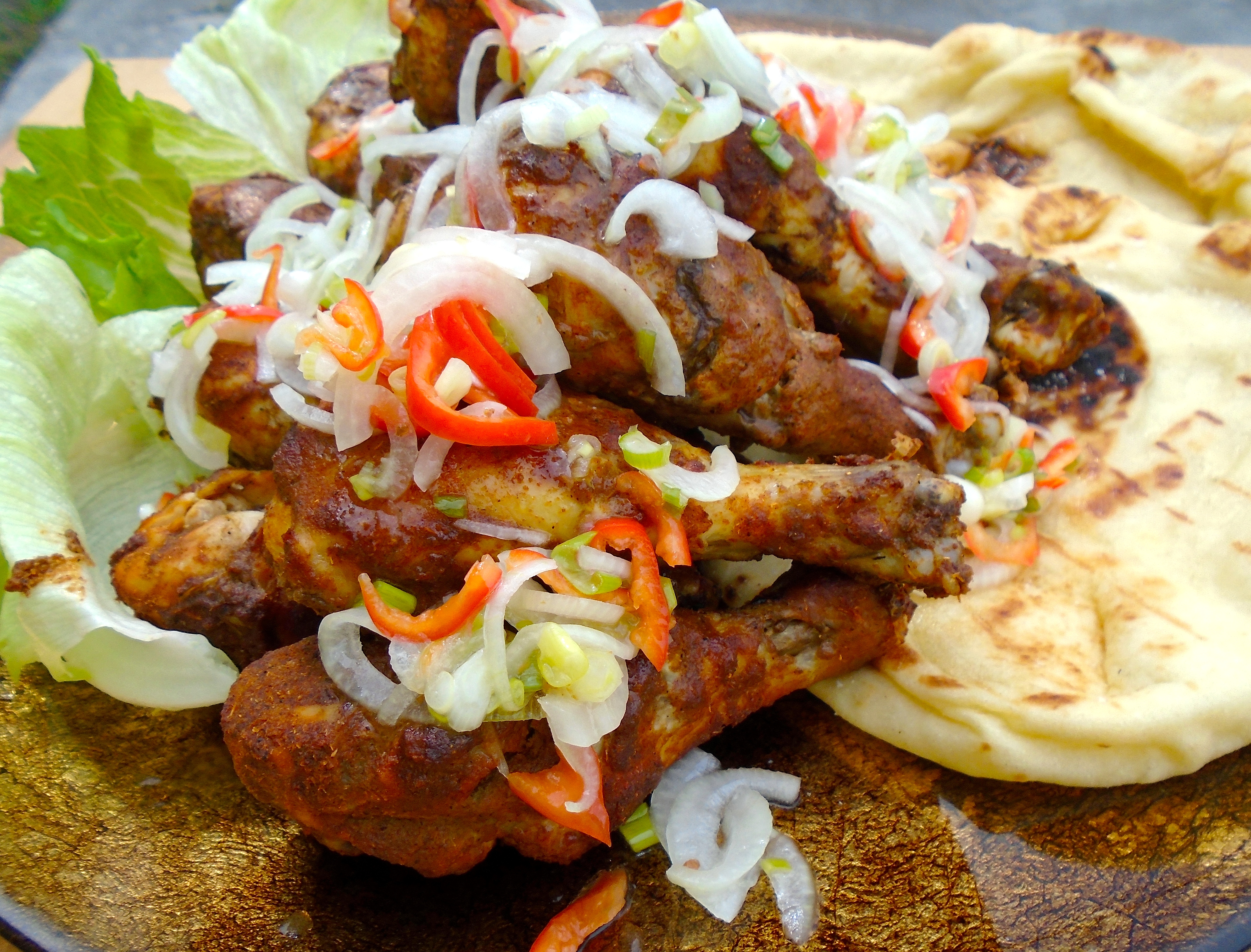 Tandori-Style Chicken Tighs with Pickled Onions ← Previous Next → Tandoori-Style Chicken Drumsticks With Pickled Onions And Naan