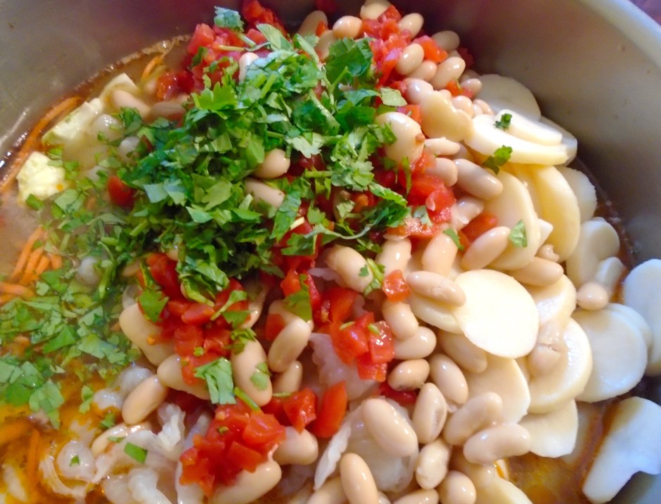 Executioners Stew ← Previous Next → add diced tomatoes, sliced cooke potatoes, cooked white beans and plenty of chopped cilantro