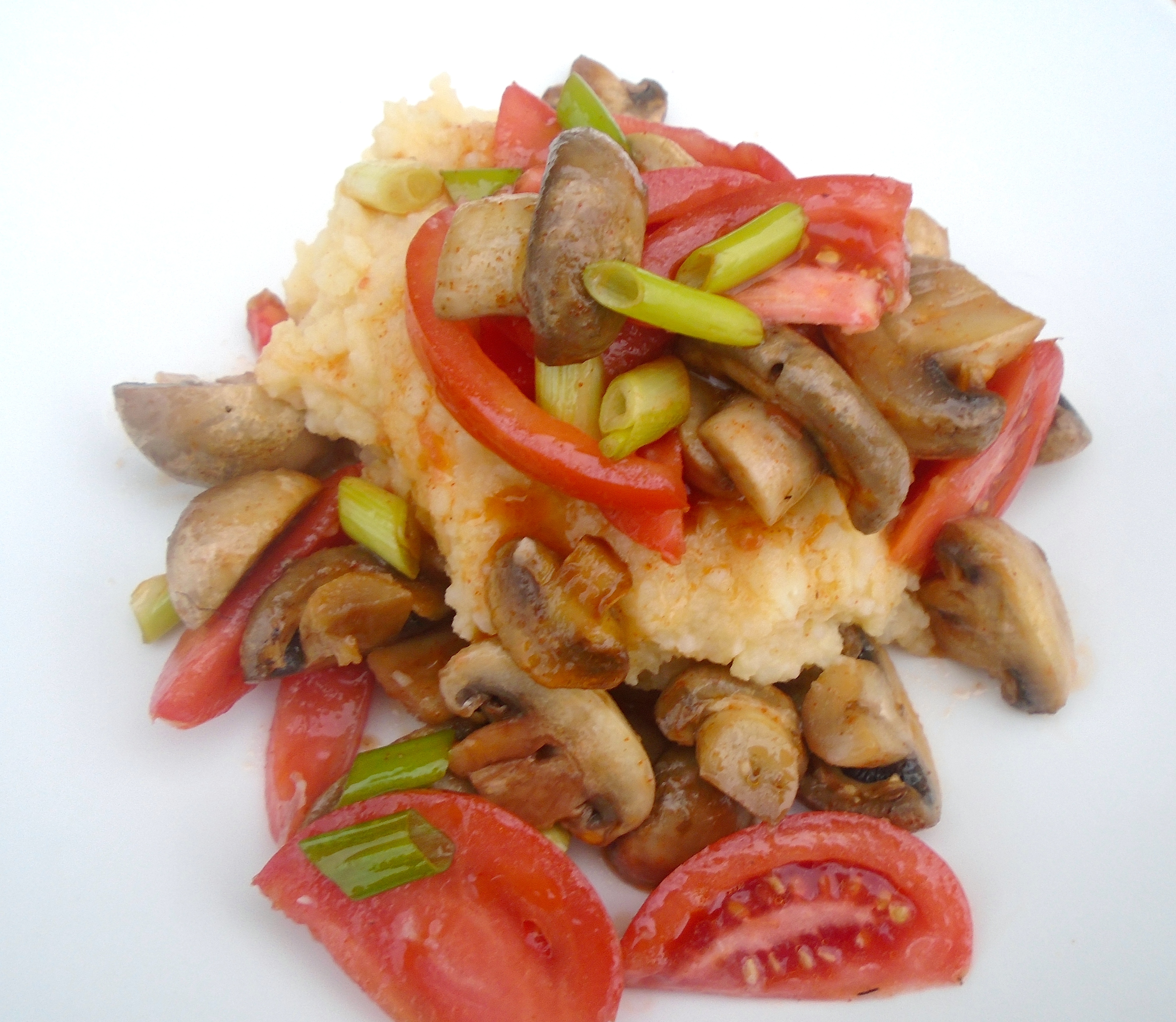 top potato puree with the sauteed veggies