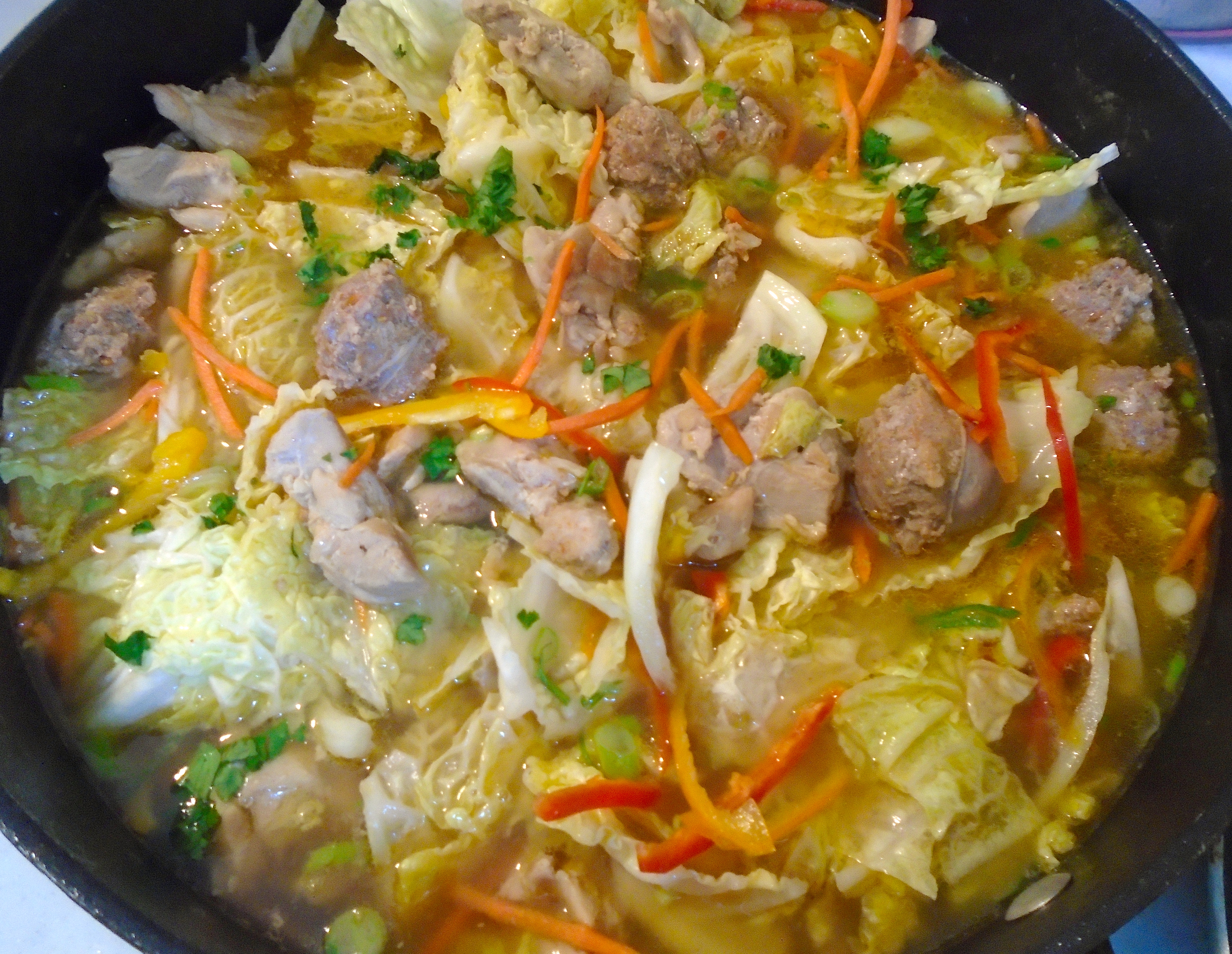 Chicken-Noodle Soup With Spicy Sausage And Napa Cabbage ← Previous Next → add sliced napa cabbage, finely sliced peppers and chopped cilantro, check / adjust seasoning