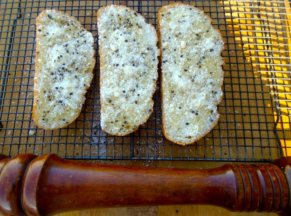 Cheese&Garlic Bread ← Previous Next → sprinkle with finely grated parmesan and fresh ground black pepper, bake at 375F until golden