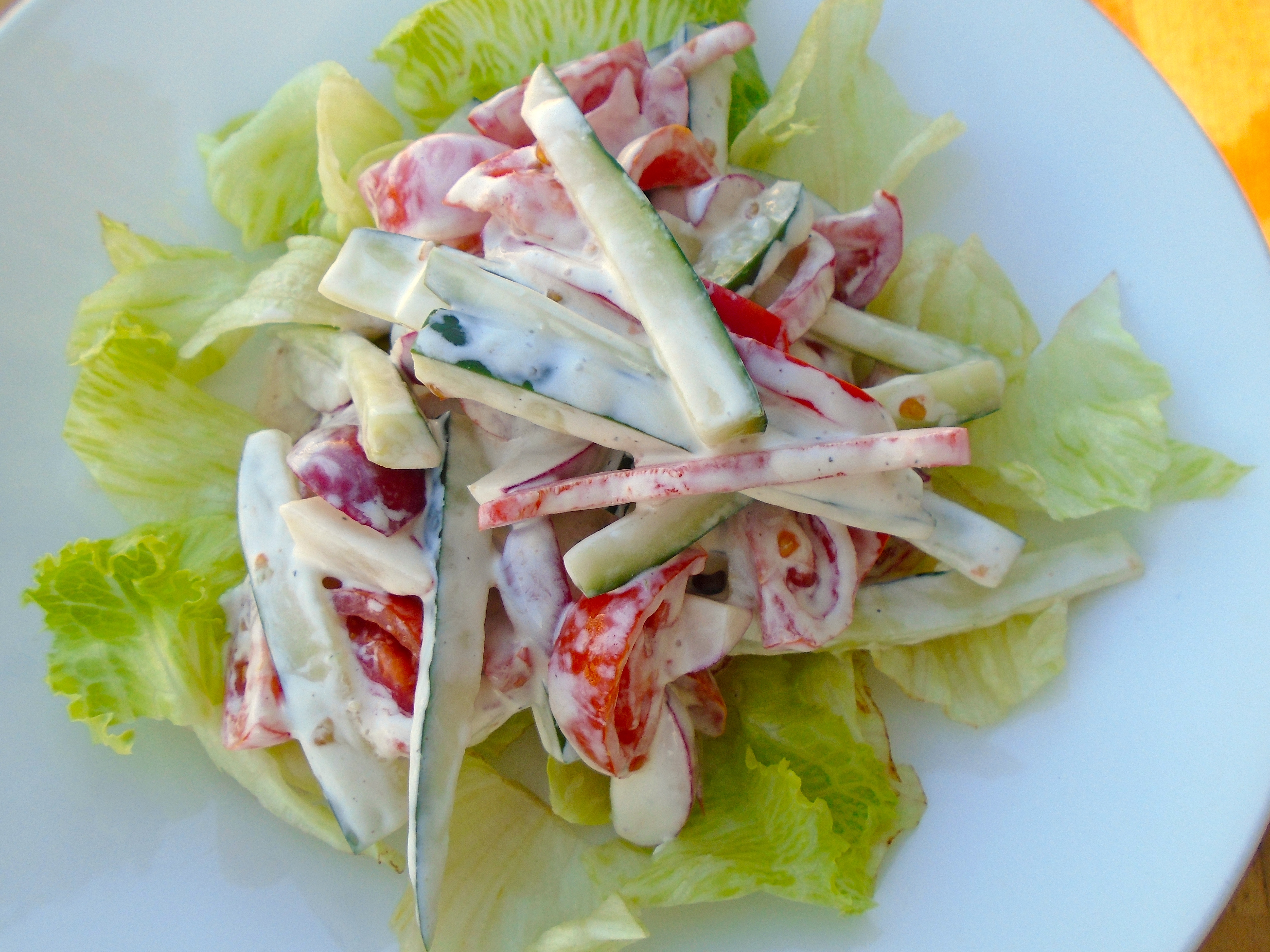 Shrimp And Vegetable Salad With Cheese/Garlic Bread
