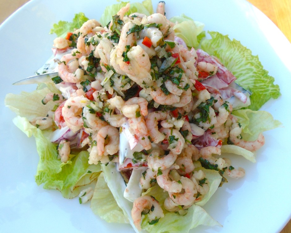 Shrimp And Vegetable Salad With Cheese/Garlic Bread