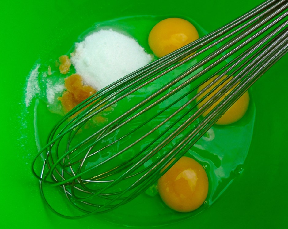 Banana-Walnut-Cake Pudding ← Previous Next → whisk 3 small eggs with a dash of organic vanilla extract and 1 tblsp of sugar or honey