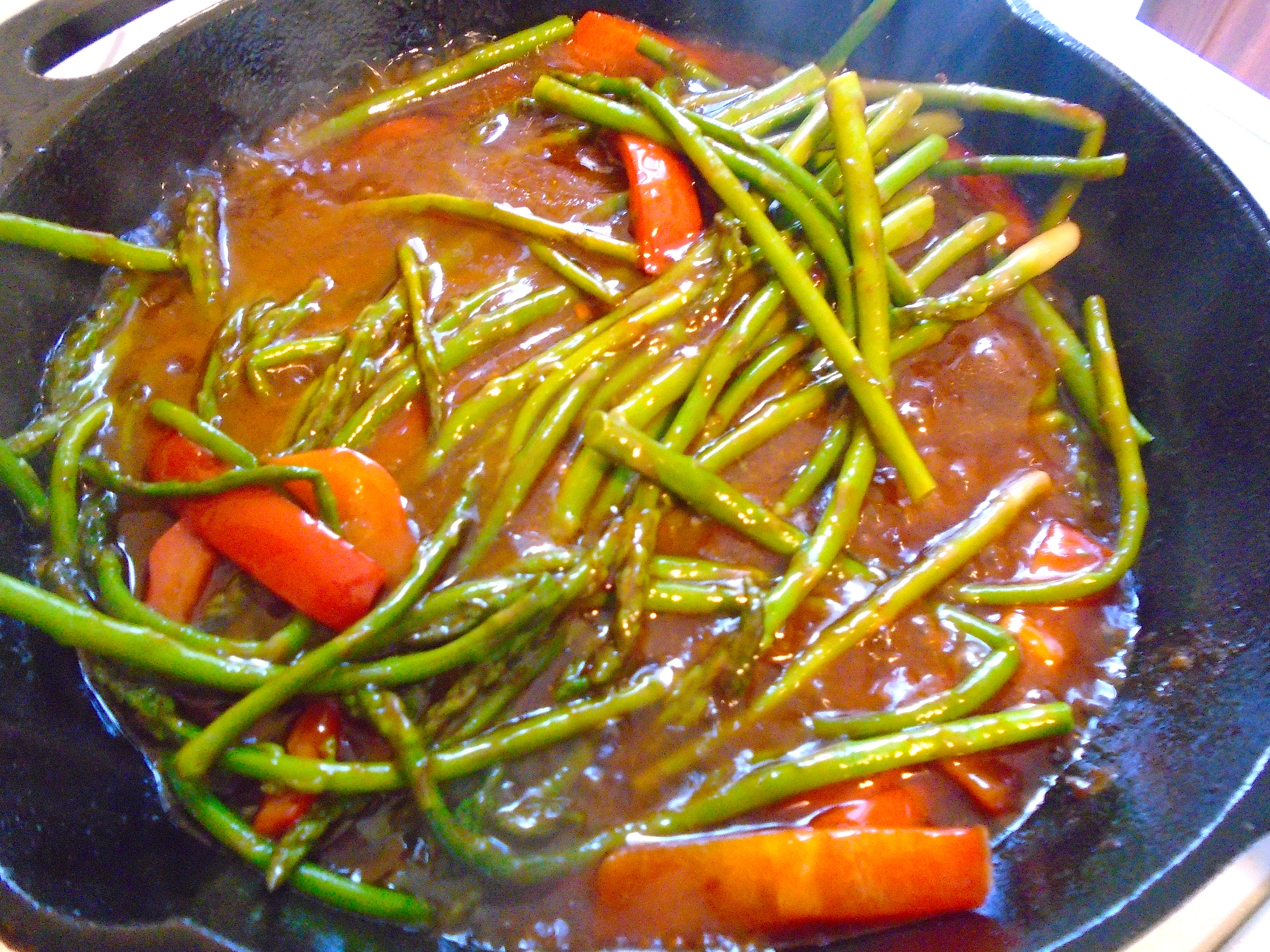 Stir Fried Beef Ribs And Asparagus In Hoi Sin Sauce ← Previous Next → add the mixed sauce, bring to a simmer, after one minute, remove from heat