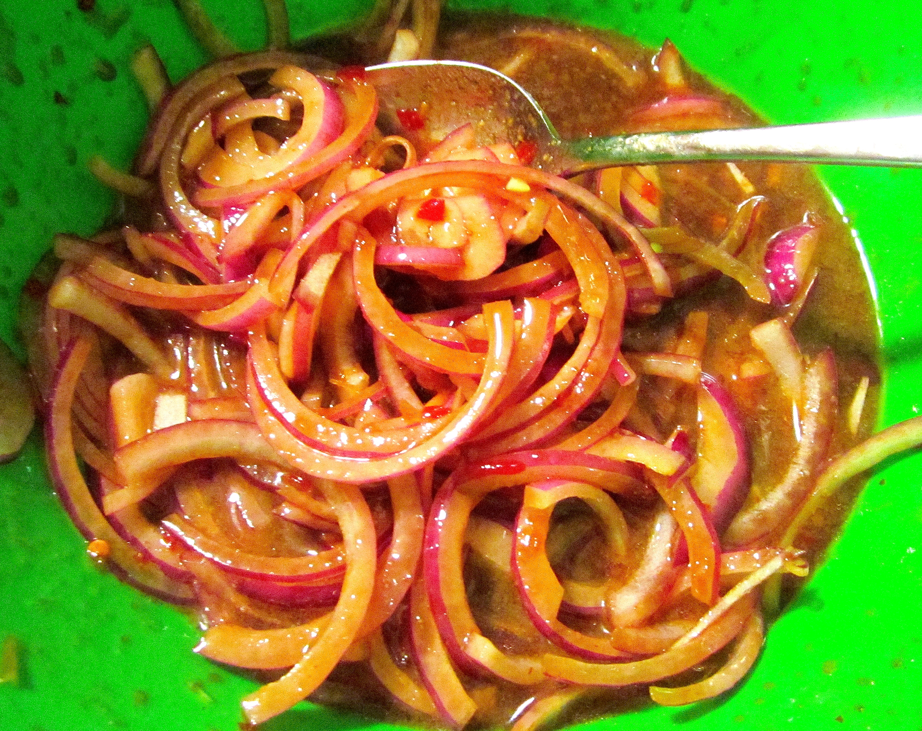 Wing Recipe # 1001 ← Previous Next → mix julienned red onions with soy sauce, garlic paste, lime juice and sriracha