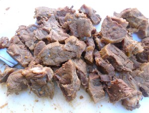 - add sliced beef neck bones to water seasoned with kosher salt, cayenne pepper, garlic paste and grated ginger, simmer until meat is tender, about 2 hours