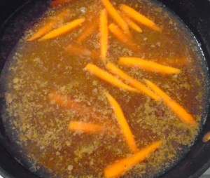- add raw baby carrots to the soup, simmer until carrots are tender