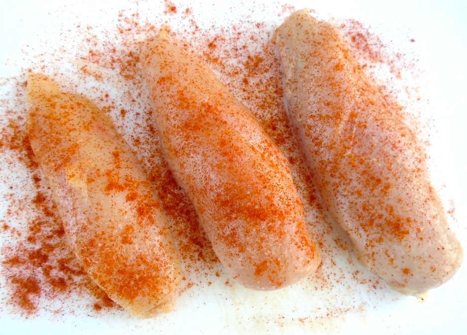 season chicken breast with kosher salt and cayenne pepper