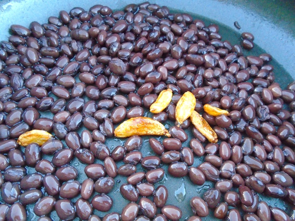 in the remaining olive oil, saute cooked beans until heated