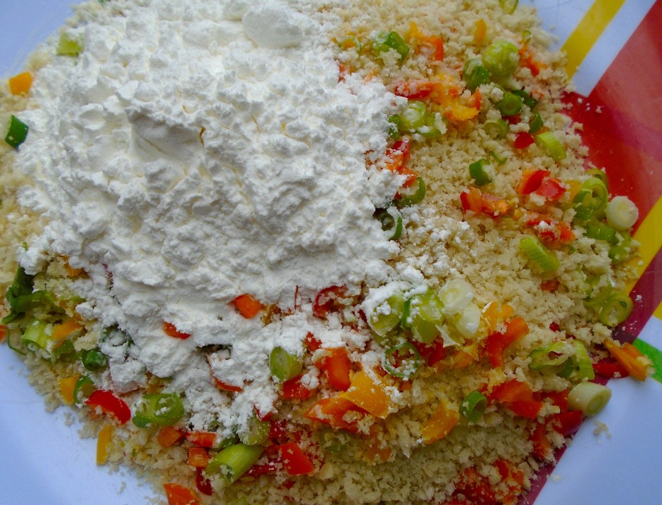 Panko Coated Flounder Fillet With Shrimp And Cucumber/Potato Salad ← Previous Next → mix panko bread crums, finely diced peppers, sliced scallions and rice flour ((substitute with corn starch if rice flour is not available)