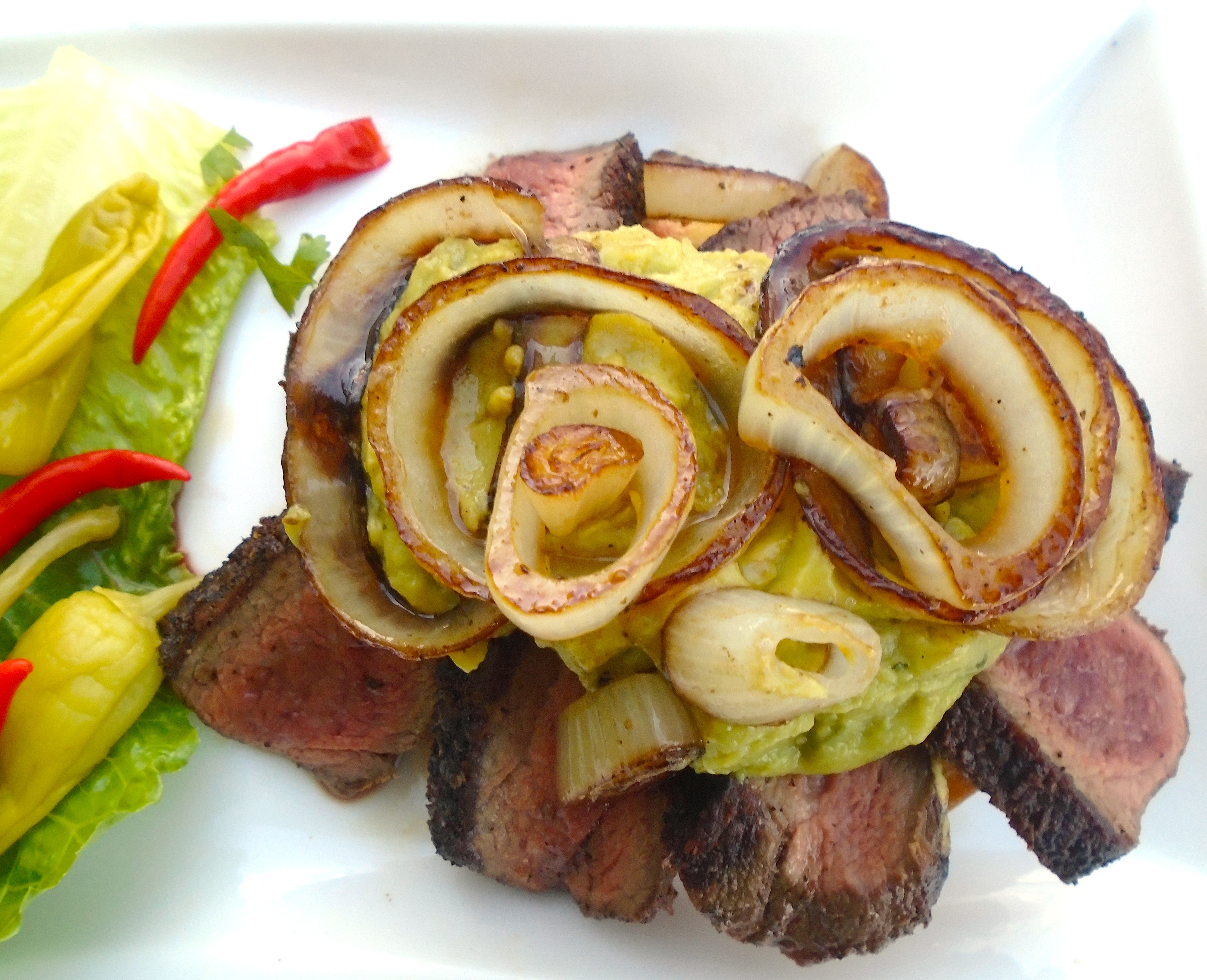 top guacamole with caramelized onions