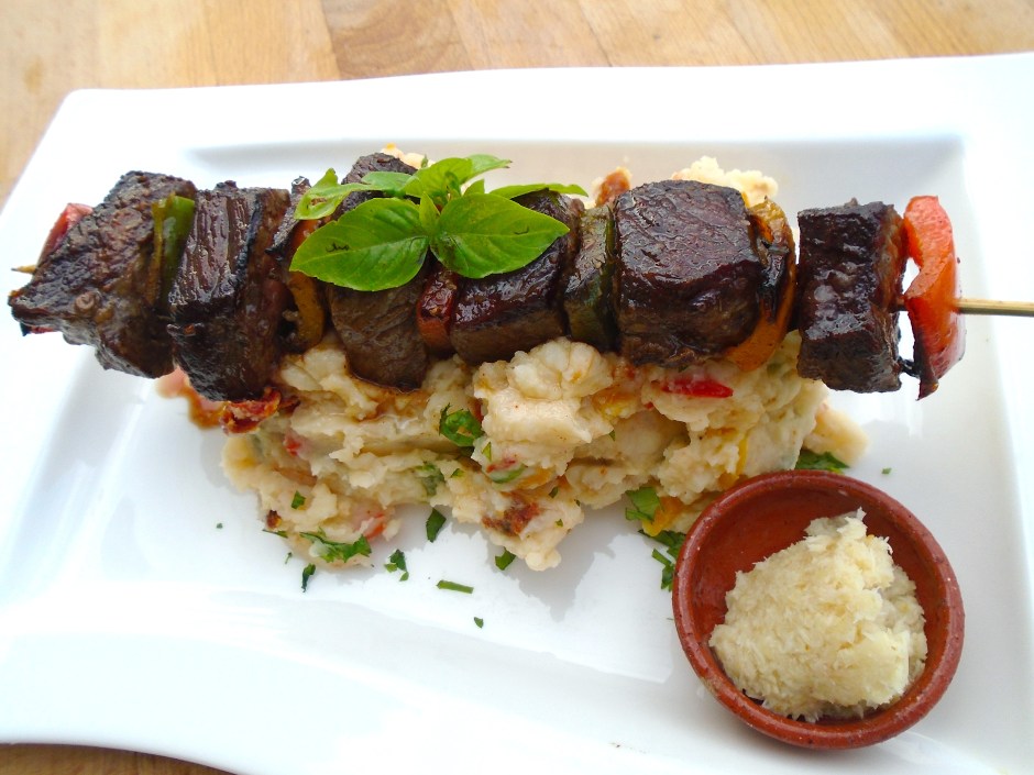 Beef Kebob With Rainbow Puree ← Previous Next → top the rainbow puree with the kebab, serve with grated horseradish