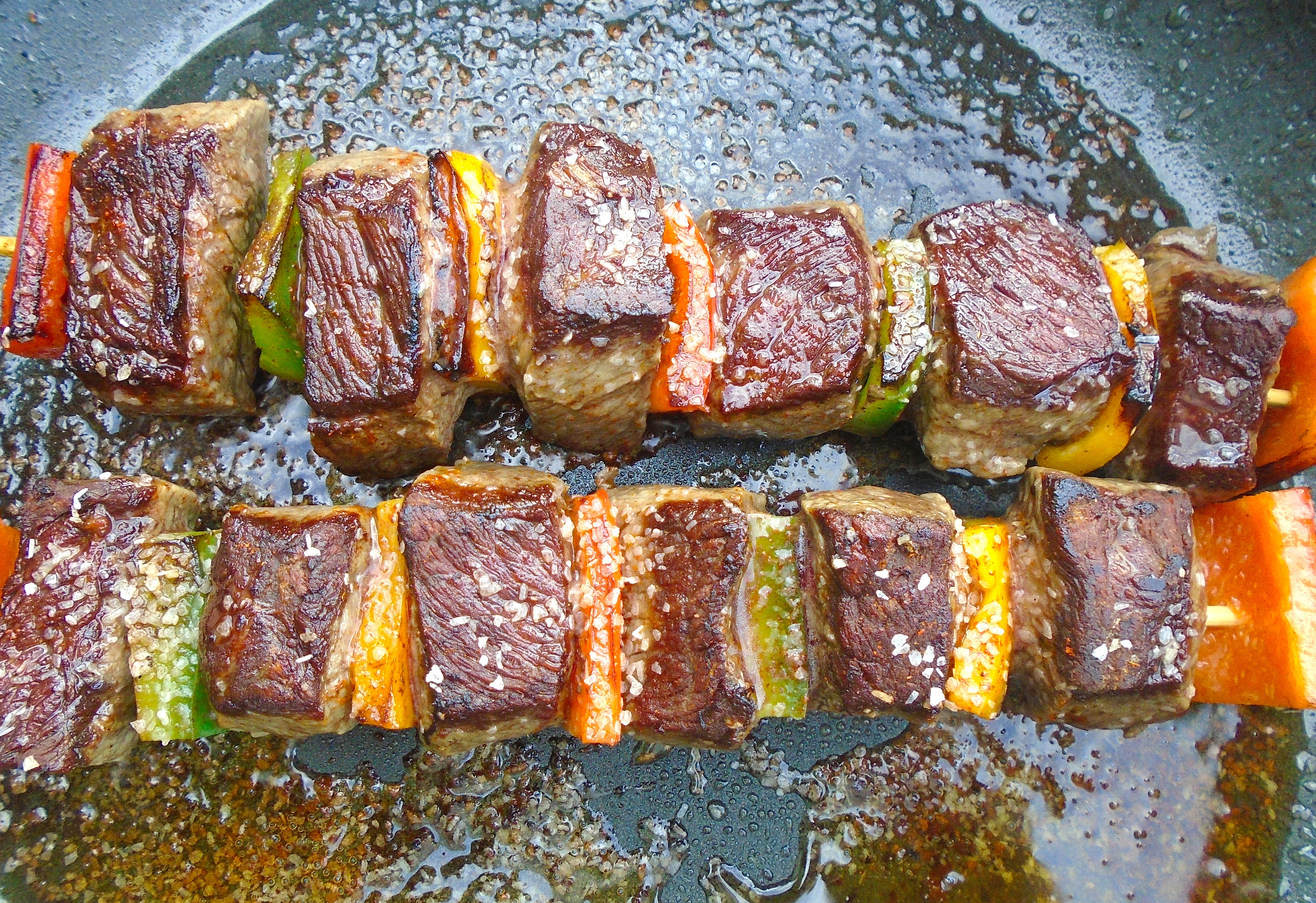 Beef Kebob With Rainbow Puree ← Previous Next → saute kebabs in garlic oil until rare, let rest for at least five minutes