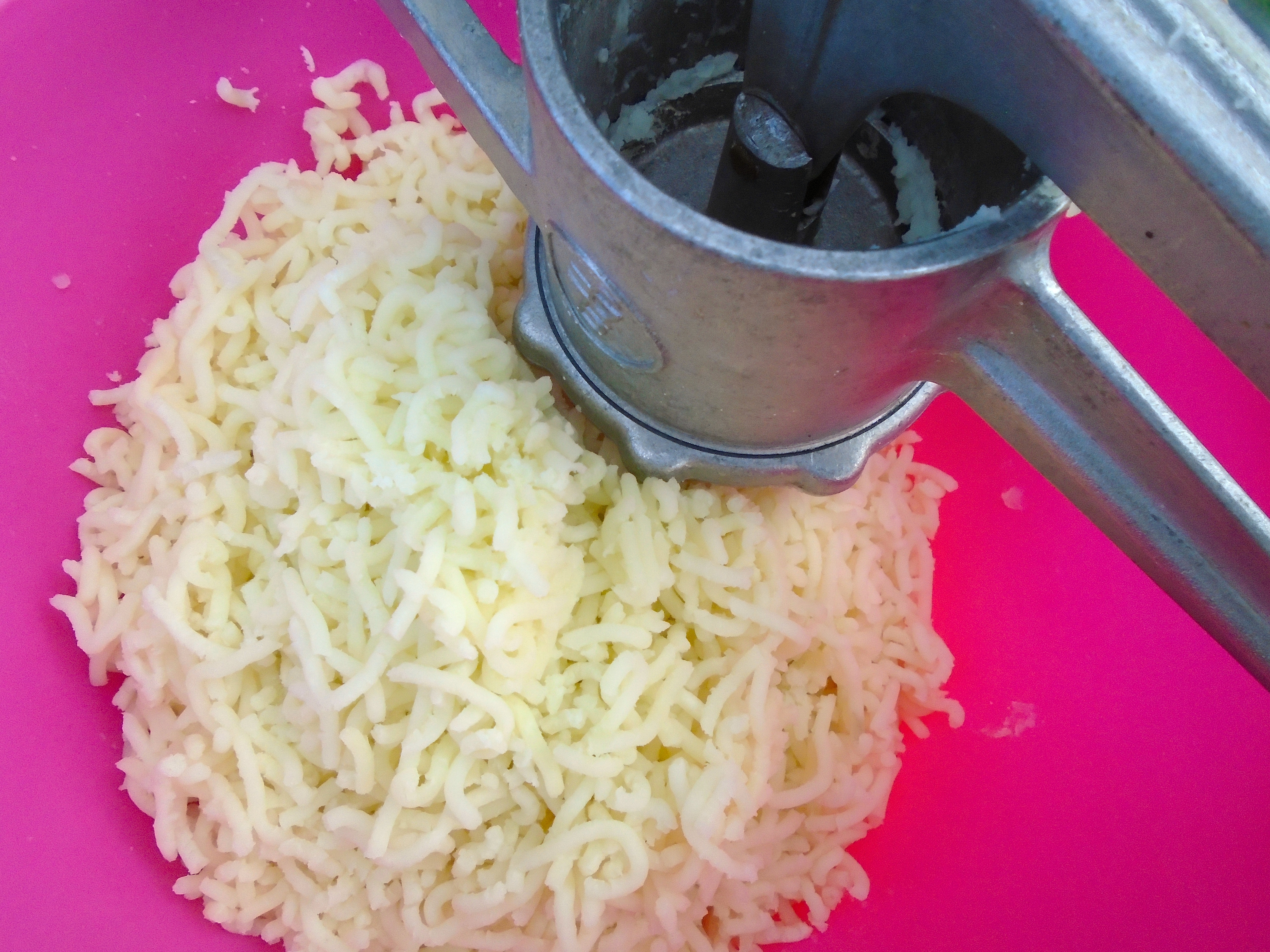 Beef Kebob With Rainbow Puree ← Previous Next → while the kebabs are cooking, squeeze freshly cooked, drained potatoes through a potato-ricer