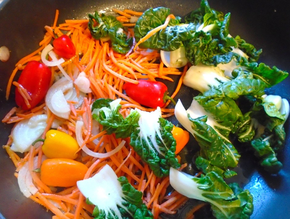 Shrimp Lo Mein (撈麵) ← Previous Next → add baby bok choy, mild chilies, carrot julienne and onion julienne ,stir fry 1 more minute