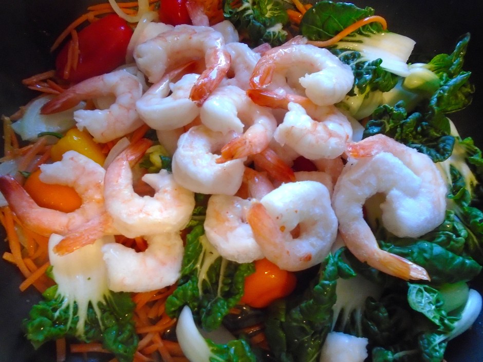 add shelled and deveined shrimp, stir fry another minute