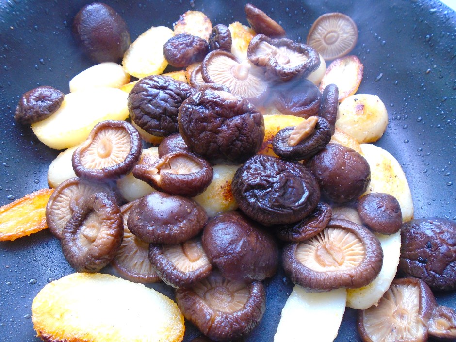 Filet Mignon With Sautéed Potatoes, Shiitake And “Hoi Sin Delight” ← Previous Next → add reconstituted shiitake, season with kosher salt and cayenne pepper