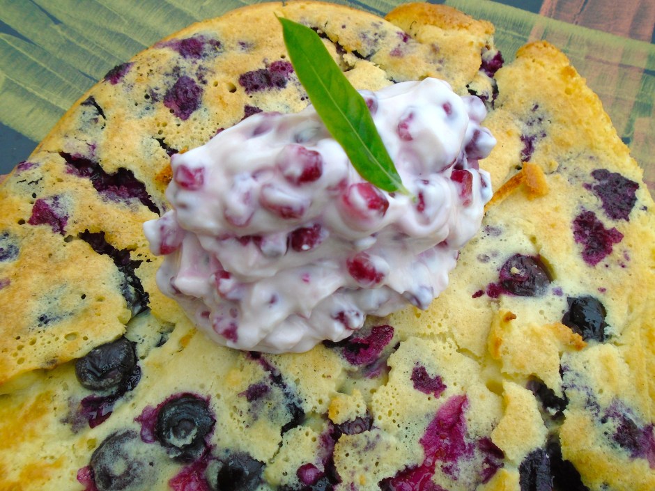 Breakfast Of Champions # 51 – Blueberry Buttermilk Pancake With Fresh Pomegranate Yoghurt ← Previous Next → top pancake with pomegranate yogurt, dust generously with castor sugar