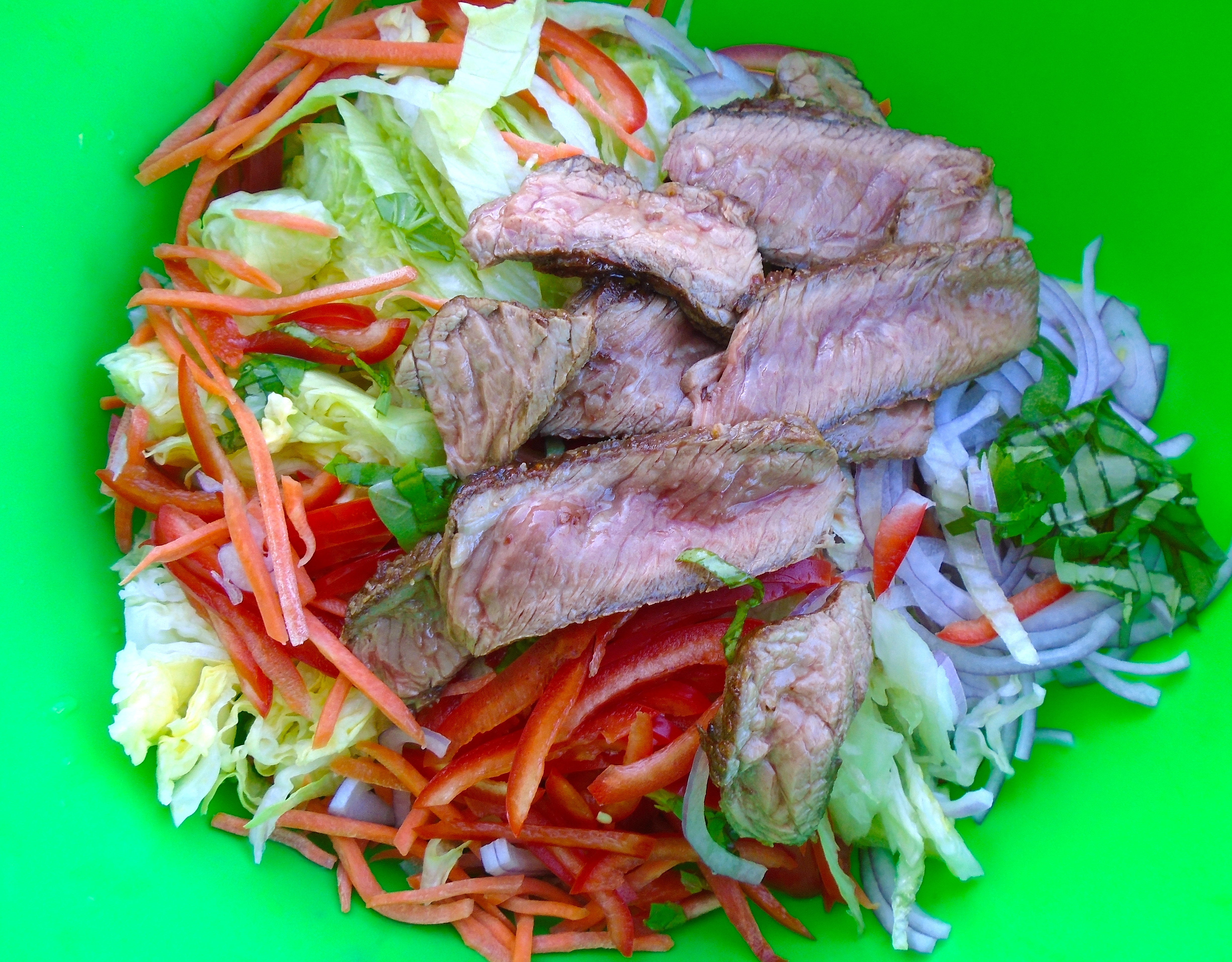 Steak Salad “Saigon” ← Previous Next → mix half of the steak, the noodles and the vegetables with the dressing