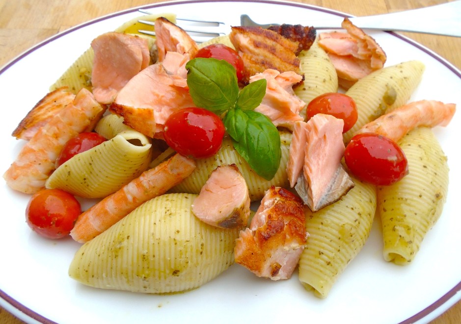Pasta Salad With Salmon, Shrimp And Pesto ← Previous Next → Pasta Salad With Salmon, Shrimp And Pesto
