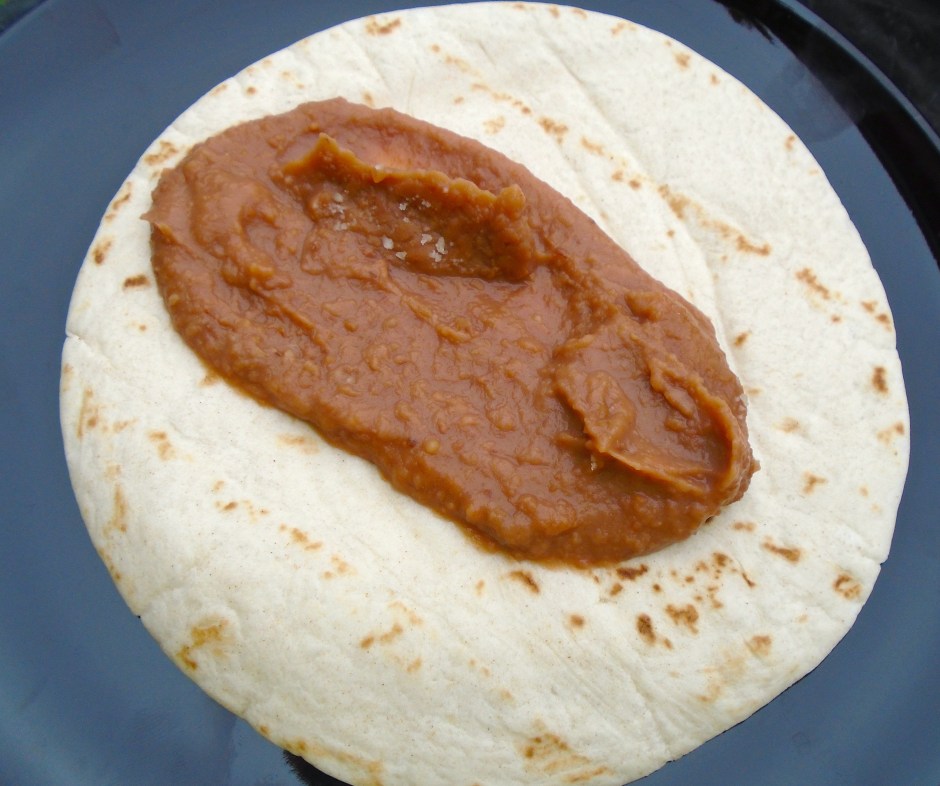 top tortilla with re-fried beans