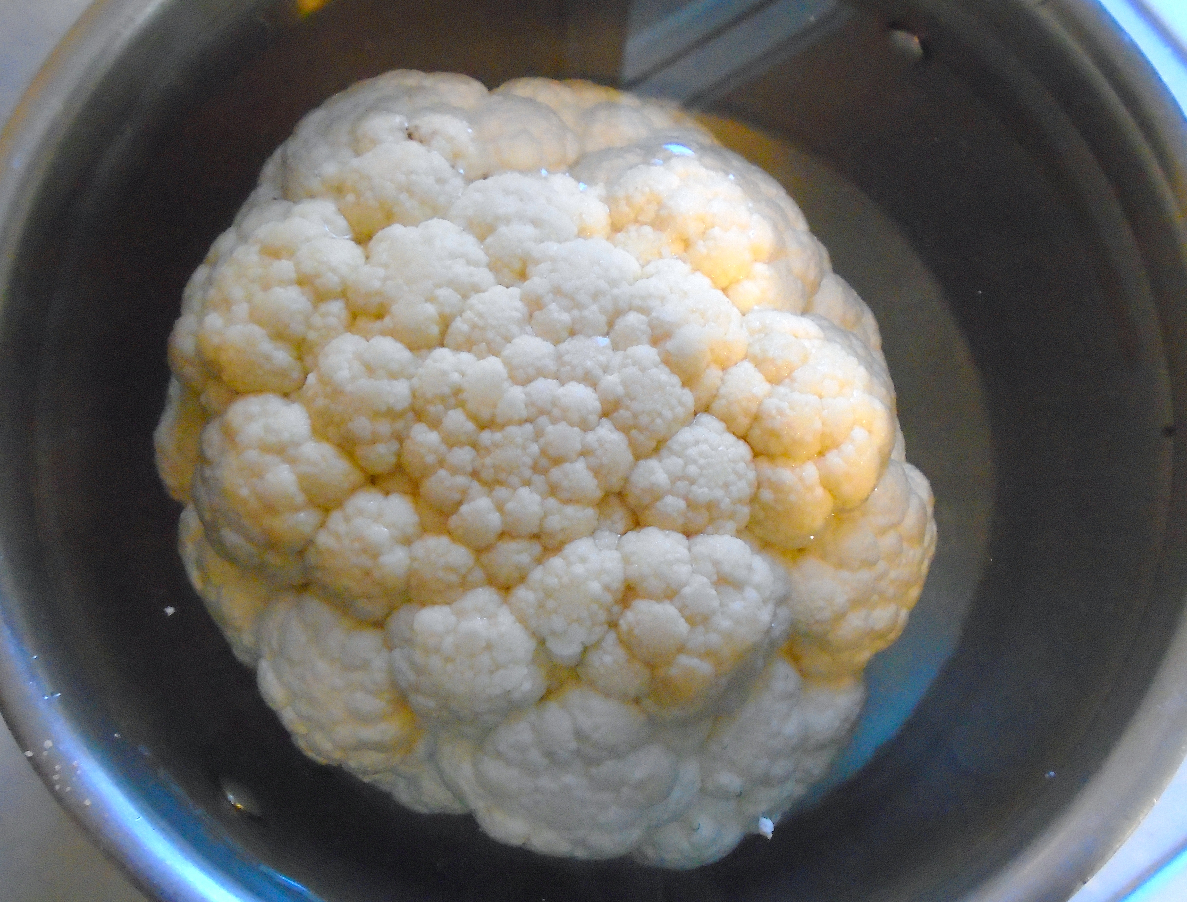 Baked Cauliflower & Confetti Shrimp ← Previous Next → place in a pot with cold, salted water, bring to a slow simmer, simmer until cauliflower is not raw anymore, but NOT soft
