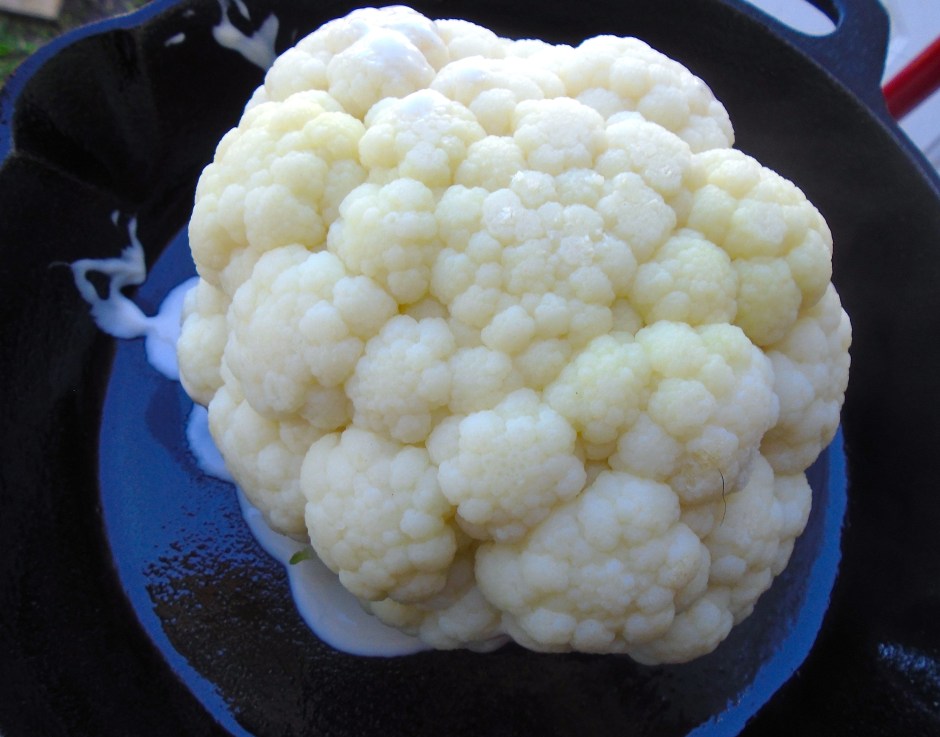 Baked Cauliflower & Confetti Shrimp ← Previous Next → turn cauliflower right-side up, place in a buttered baking dish