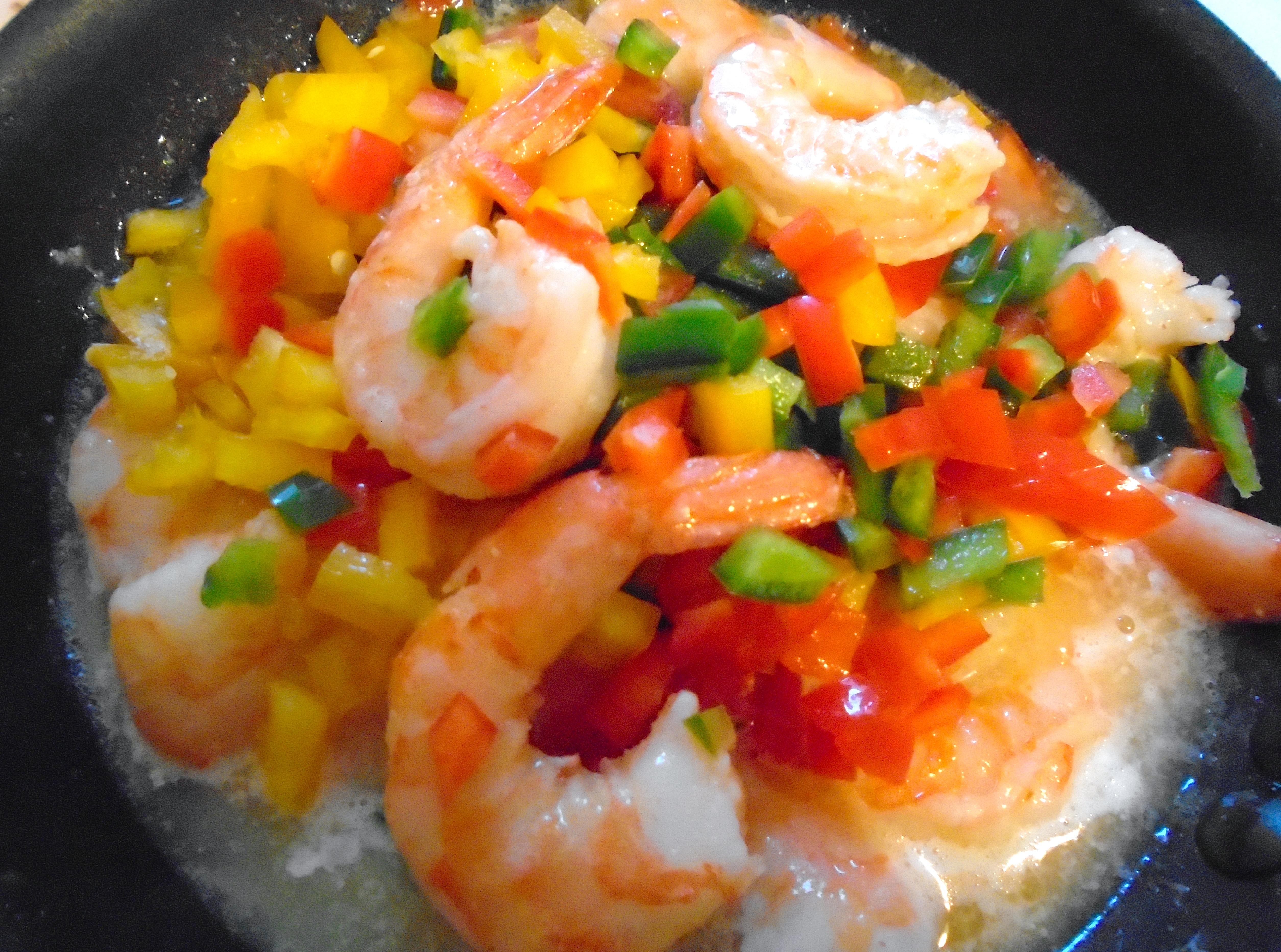 Baked Cauliflower & Confetti Shrimp ← Previous Next → saute peeled & deveined shrimp with garlic paste, diced peppers, kosher salt and cayenne peppers