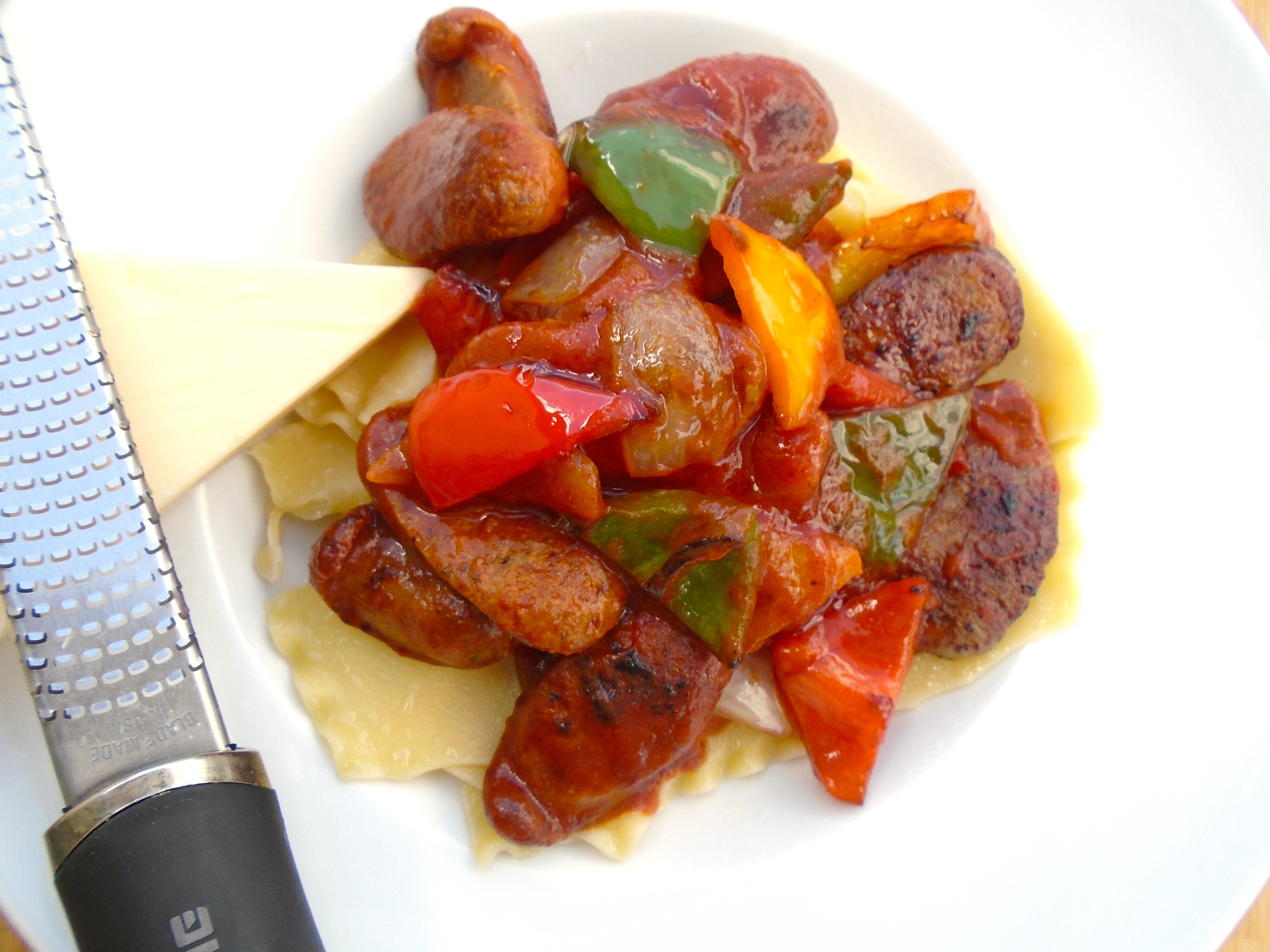 Easy Does It # 32 – Italian-Style Sausage and Peppers ← Previous Next → top with the sausage/pepper stew