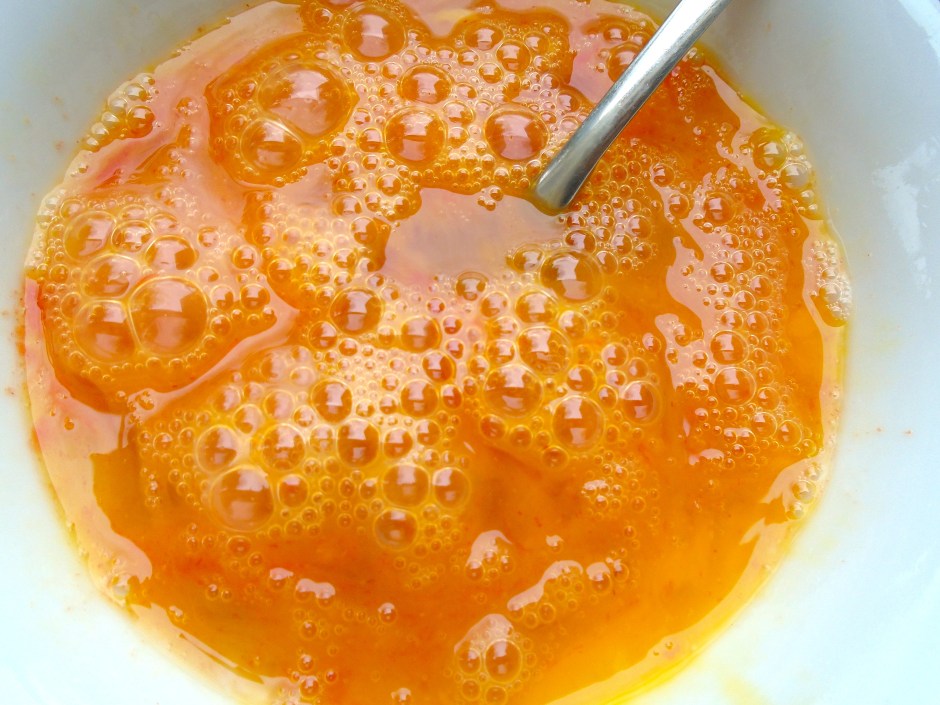 Breakfast Of Champions # 33 – Burrito With Scrambled Eggs, Refried Beans And Avocado Next → season eggs with garlic paste, kosher salt and cayenne pepper