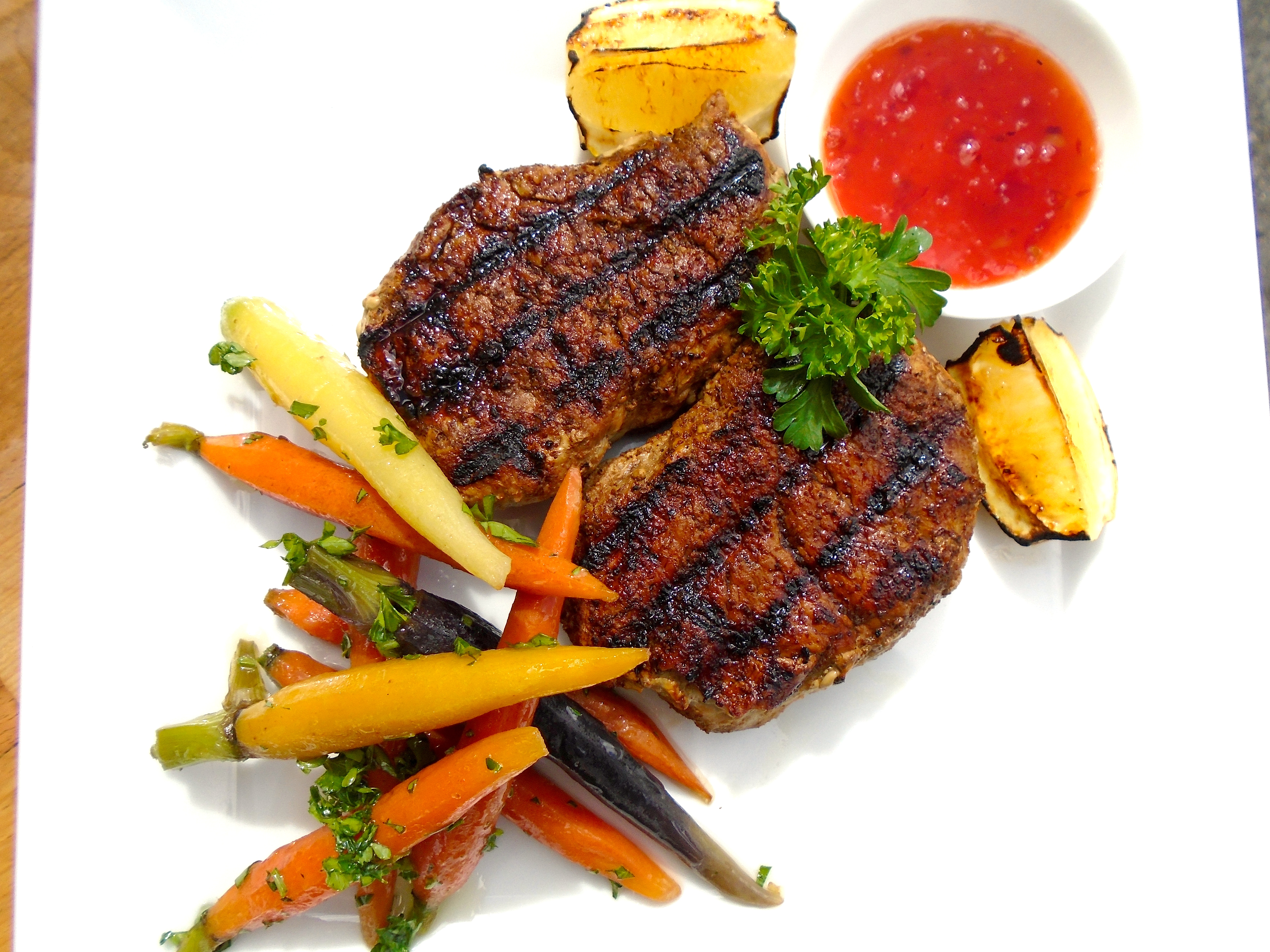 Pork Medaillons Teriyaki With Rainbow-Carrots In Honeybutter ← Previous Next → serve medallions with the carrots, Thai chili sauce and grilled lemon wedges