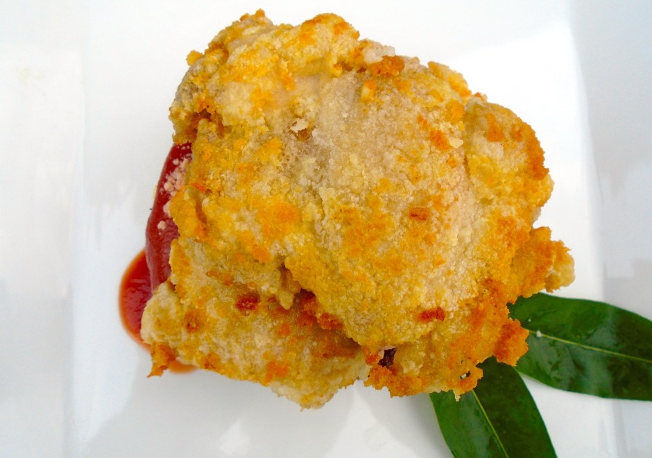Parmesan-Crusted Chicken Tights With Potato Patty And Cilantro/Lime Dressing ← Previous Next → top wit two chicken thighs